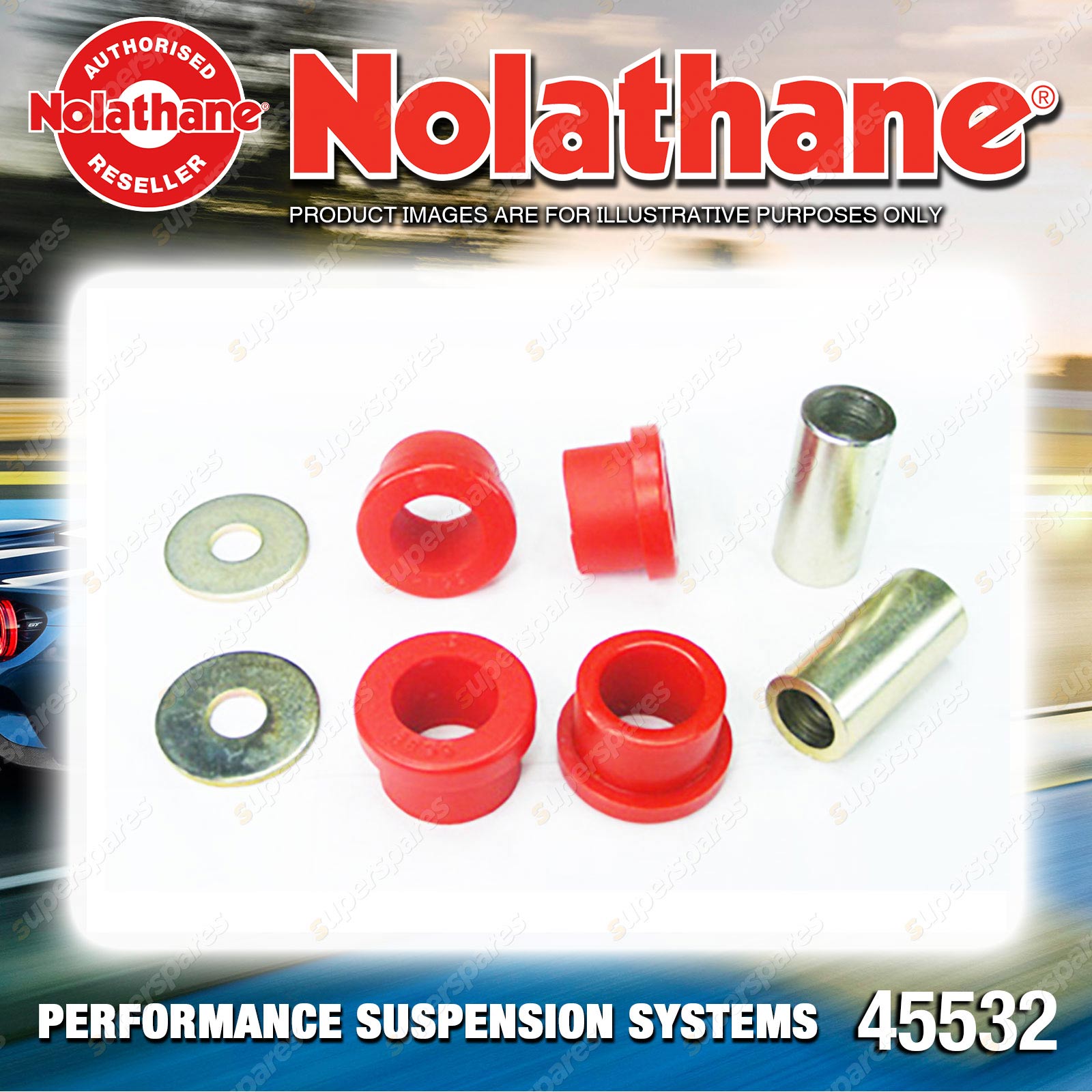 | Contents : Nolathane Front Control arm - lower inner front bushing Warranty : 3 Year / 60,000Kms Kit Contents : 4 Bushings, 2 Tubes, 2 Washers, Grease |