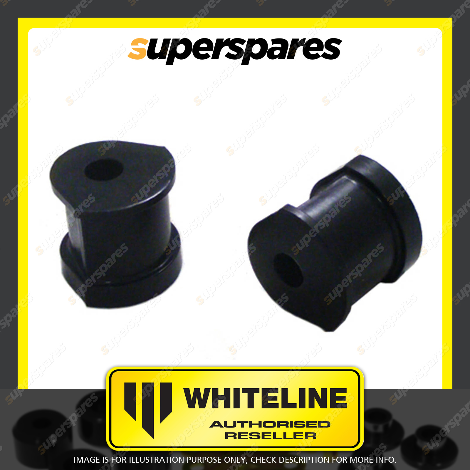 | Contents : Whiteline Front Control arm - lower inner Rear bushing Warranty : 3 Year / 60,000Kms Kit Contents : 2 Bushings, Grease |