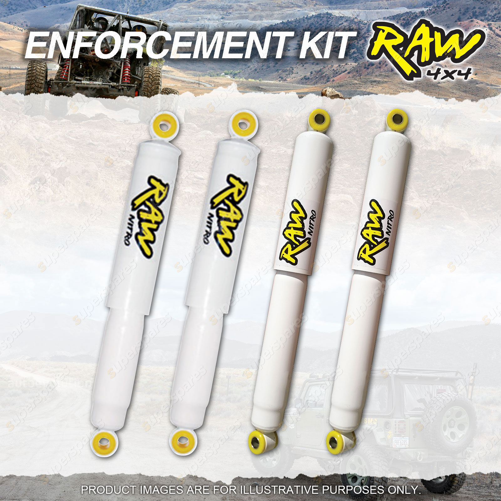 2 Front RAW 4x4 Nitro 50mm Lift Height 35mm Bore Nitrogen Gas Charged Shock Absorbers