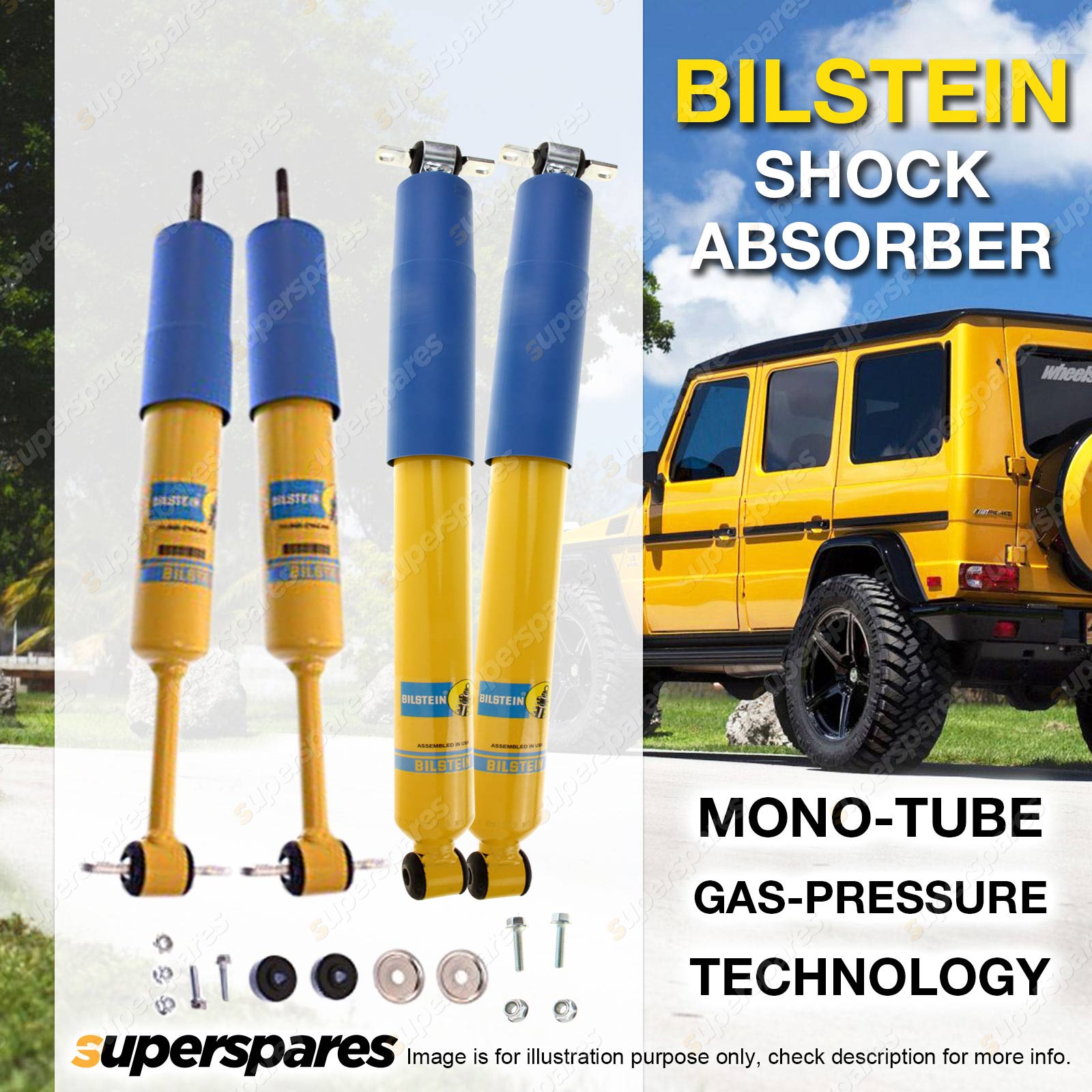 Extensive testing and fine tuning has been undertaken by Bilstein to ensure that fitting BILSTEIN B6 Offroad shock absorbers to your 4WD improves handling performance across all regards. Offering a higher load carrying capacity as well as a higher degree of vehicle control, the BILSTEIN B6 Offroad shock absorber increases 4WD capability across all driving conditions, from the black top to the off-road trails.