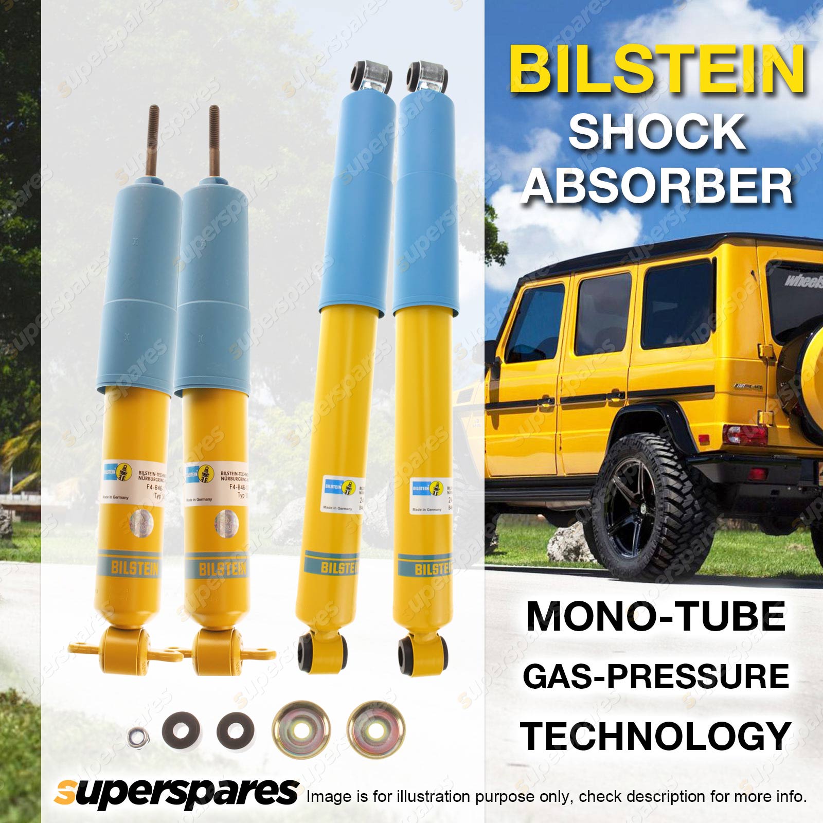 Extensive testing and fine tuning has been undertaken by Bilstein to ensure that fitting BILSTEIN B6 Offroad shock absorbers to your 4WD improves handling performance across all regards. Offering a higher load carrying capacity as well as a higher degree of vehicle control, the BILSTEIN B6 Offroad shock absorber increases 4WD capability across all driving conditions, from the black top to the off-road trails.