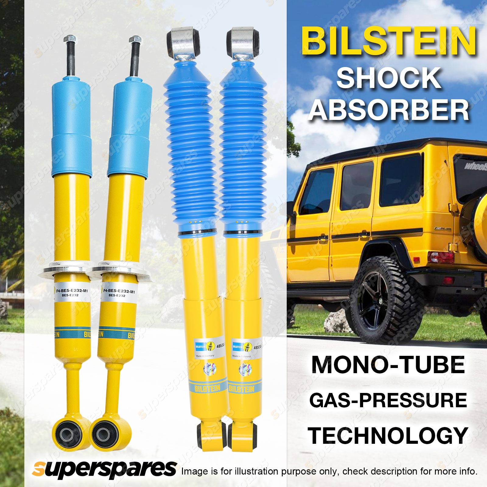 Extensive testing and fine tuning has been undertaken by Bilstein to ensure that fitting BILSTEIN B6 Offroad shock absorbers to your 4WD improves handling performance across all regards. Offering a higher load carrying capacity as well as a higher degree of vehicle control, the BILSTEIN B6 Offroad shock absorber increases 4WD capability across all driving conditions, from the black top to the off-road trails.