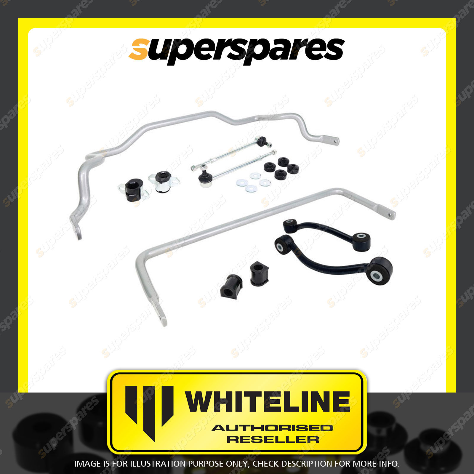 | Contents : Whiteline Front and Rear Sway Bar - Vehicle Kit Warranty : 3 Year / 60,000Kms Kit Contents : 2 Sway Bars, 4 Links, 4 Bushings, Hardware |