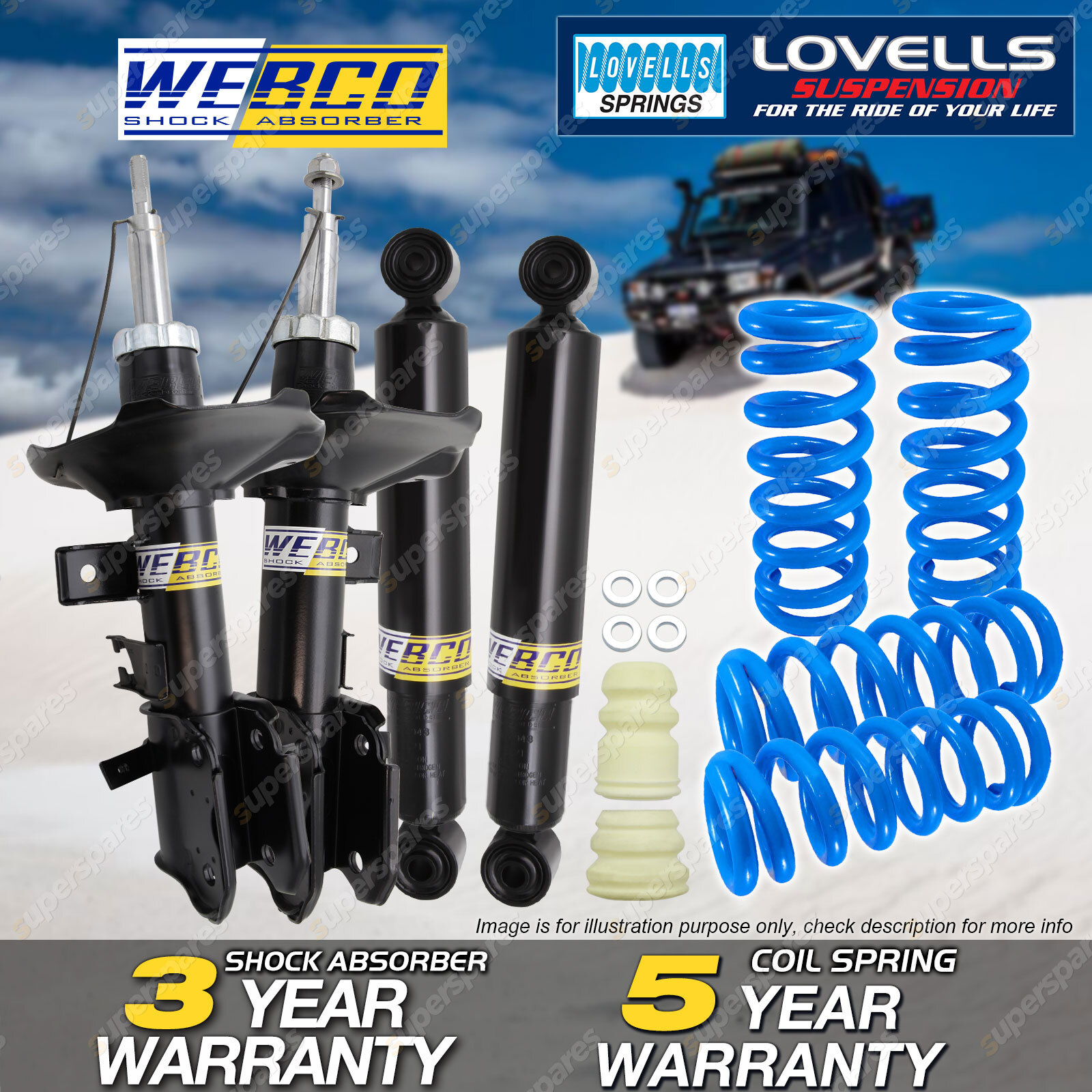 CONTENTS: 2 Pcs Front Webco Strut Shock Absorbers 2 Pcs Front Raised Lovells Coil Springs (40-50mm Raised) 2 Pcs Rear Webco Heavy Duty Shock Absorbers 2 Pcs Rear Raised Lovells Coil Springs (40-50mm Raised) SUITS: Nissan Pathfinder R50 3.3ltr V6 RX ST & TI 4WD Station Wagon Feb-99-Oct-01 |