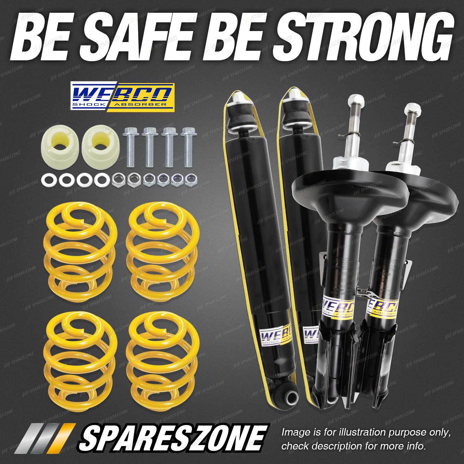 2 Pcs Front Webco Strut Shock Absorbers 2 Pcs Rear Webco Premium Shock Absorbers 2 Pcs Front Lowered King Coil Springs (30mm Lowered) 2 Pcs Rear Lowered King Coil Springs (30mm Lowered) |