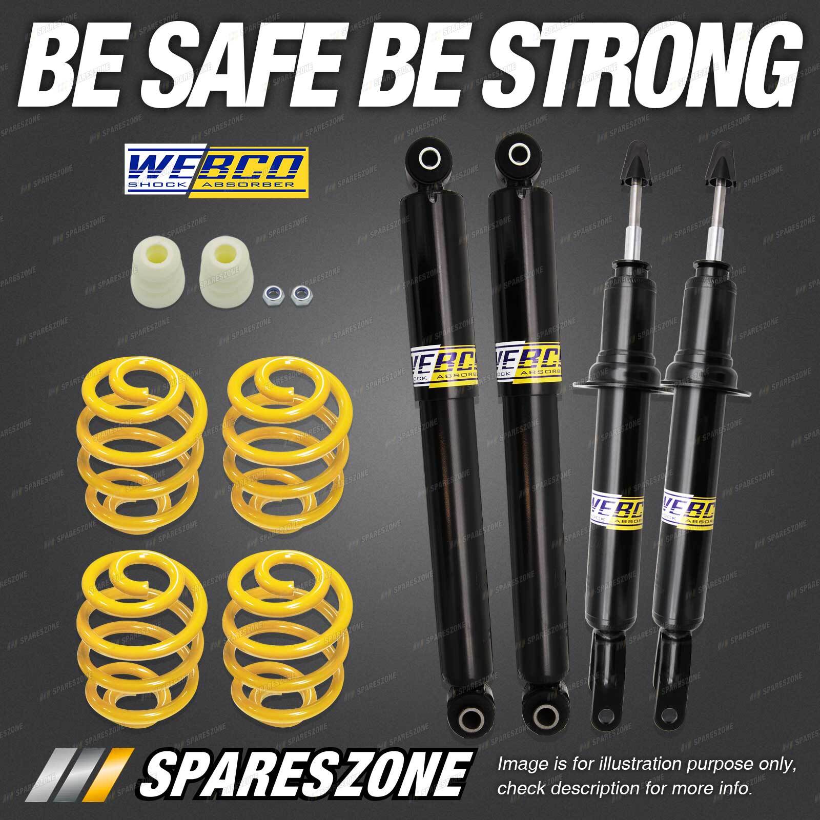 2 Pcs Front Webco Spring Seat Shock Absorbers 2 Pcs Rear Webco Premium Shock Absorbers 2 Pcs Front Super Low King Coil Springs (40-50mm Lowered) 2 Pcs Rear Super Low King Coil Springs (40-50mm Lowered) |