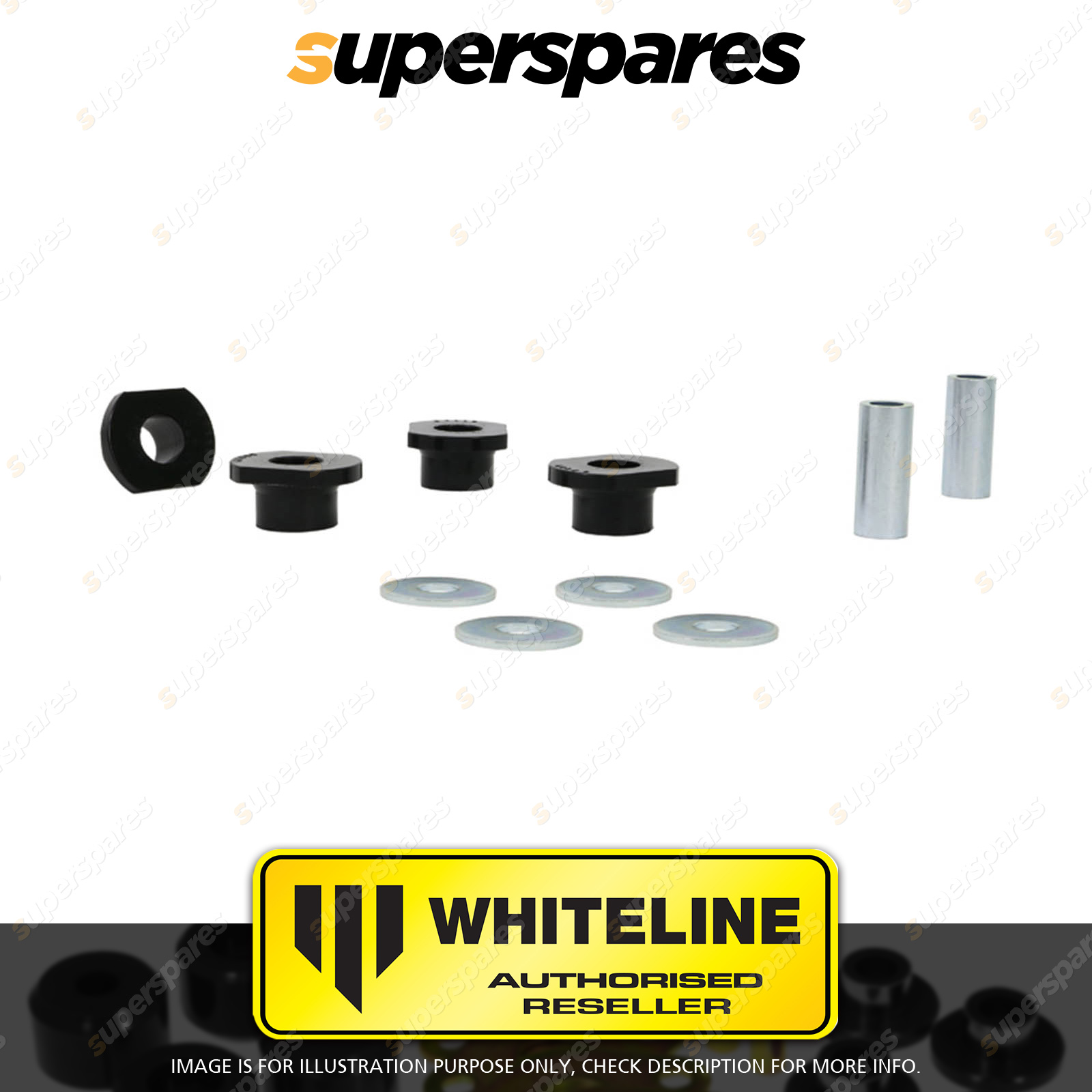 | Contents : Whiteline Front Steering - rack and pinion mount bushing Warranty : 3 Year / 60,000Kms Kit Contents : 4 Bushings, 2 Tubes, 4 Washers, Grease |