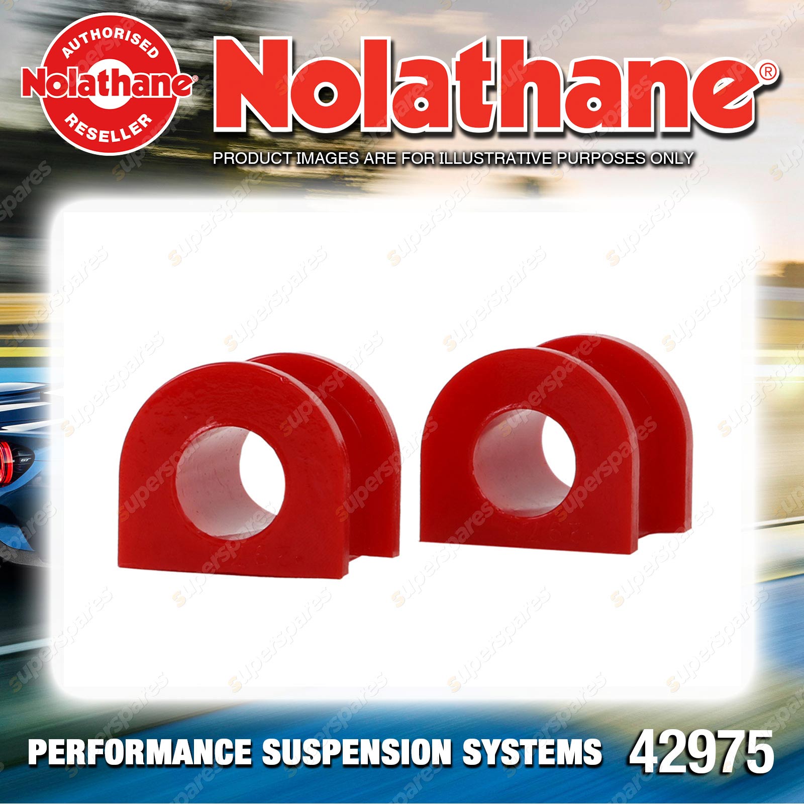 | Contents : Nolathane Front Sway bar - mount bushing Warranty : 3 Year / 60,000Kms Kit Contents : 2 Bushings, Grease |