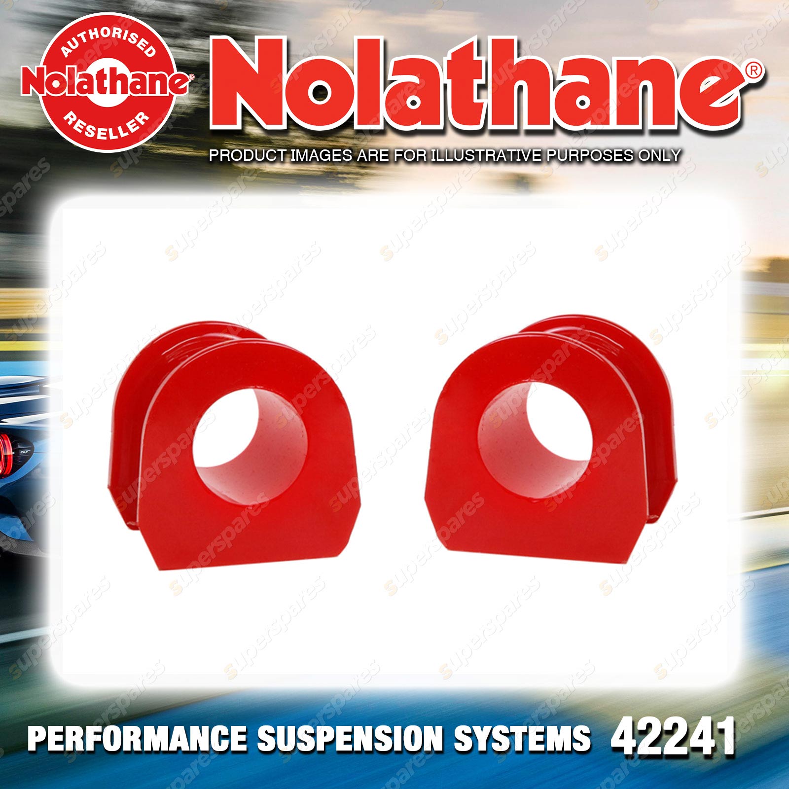 | Contents : Nolathane Front Sway bar - mount bushing Warranty : 3 Year / 60,000Kms Kit Contents : 2 Bushings, Grease |