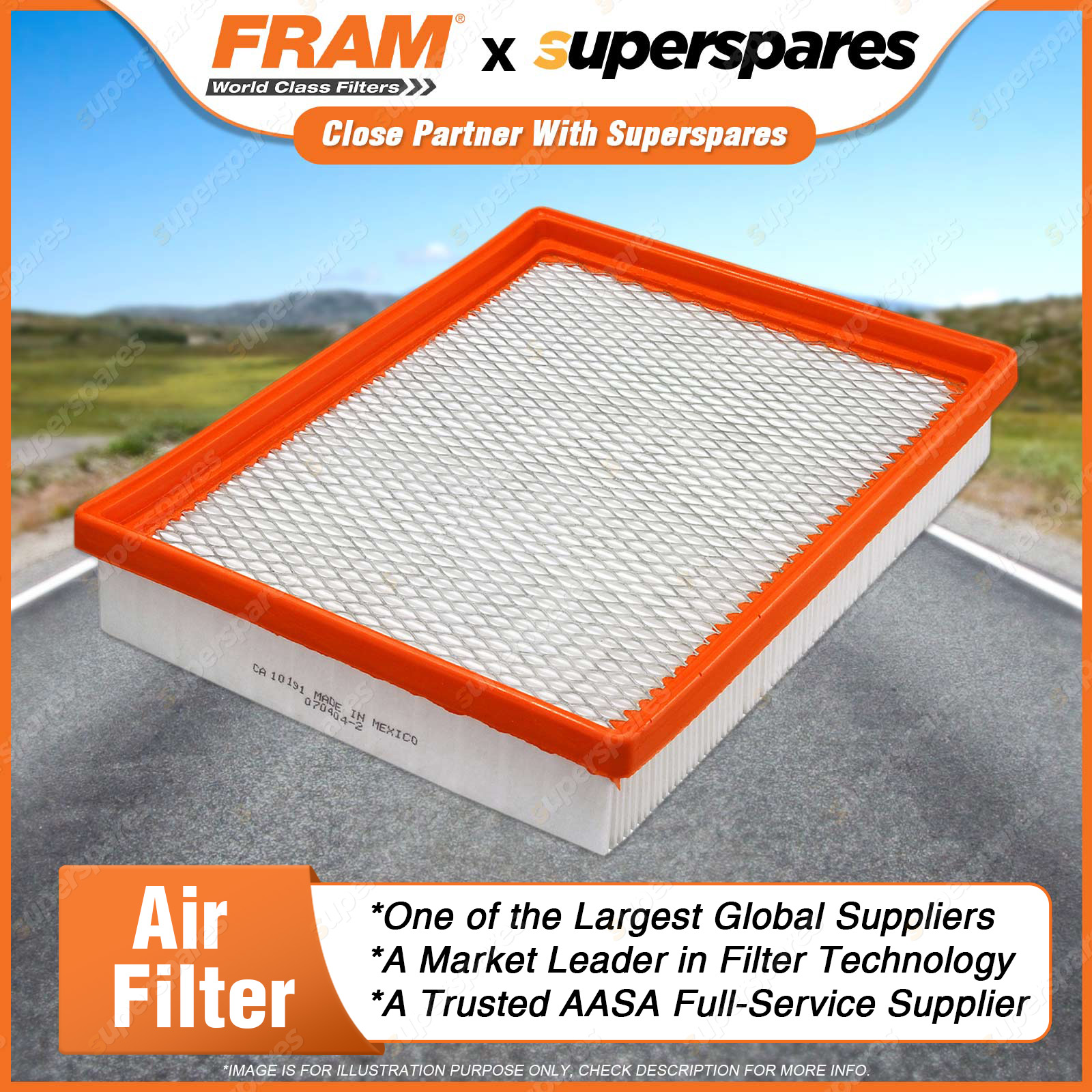 Air mixes with fuel before entering the combustion chamber and any dirt in the air will damage the combustion chamber and pistons.Air filters remove contaminants from the air entering the engine, thus protecting the combustion chamber from the damaging effects of airborne dirt. Features & Benefits: A FRAM air filter will ensure optimum engine combustion by creating the ideal balance in air/fuel mixture. FRAM Air filters improve the air flow in the engine and allow for better engine performance and superior fuel economy. FRAM air filters contain fine media paper to ensure that all sizes of dirt is collected and removed from the air entering the engine. Correct fineness and pleat geometry provides filter stability. We utilise moisture resistant media paper to ensure the media is not adversely affected by airborne moisture in the in-take air. FRAM panel air filters have the right density PU to ensure a tight fit in the air filter housing. | ![]() |