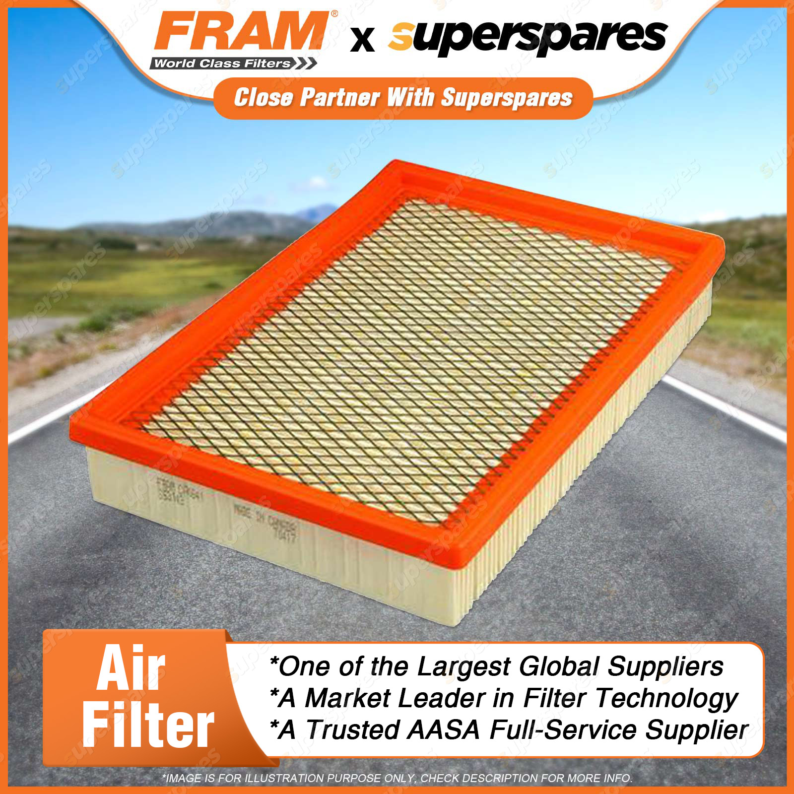Air mixes with fuel before entering the combustion chamber and any dirt in the air will damage the combustion chamber and pistons.Air filters remove contaminants from the air entering the engine, thus protecting the combustion chamber from the damaging effects of airborne dirt. Features & Benefits: A FRAM air filter will ensure optimum engine combustion by creating the ideal balance in air/fuel mixture. FRAM Air filters improve the air flow in the engine and allow for better engine performance and superior fuel economy. FRAM air filters contain fine media paper to ensure that all sizes of dirt is collected and removed from the air entering the engine. Correct fineness and pleat geometry provides filter stability. We utilise moisture resistant media paper to ensure the media is not adversely affected by airborne moisture in the in-take air. FRAM panel air filters have the right density PU to ensure a tight fit in the air filter housing. | ![]() |