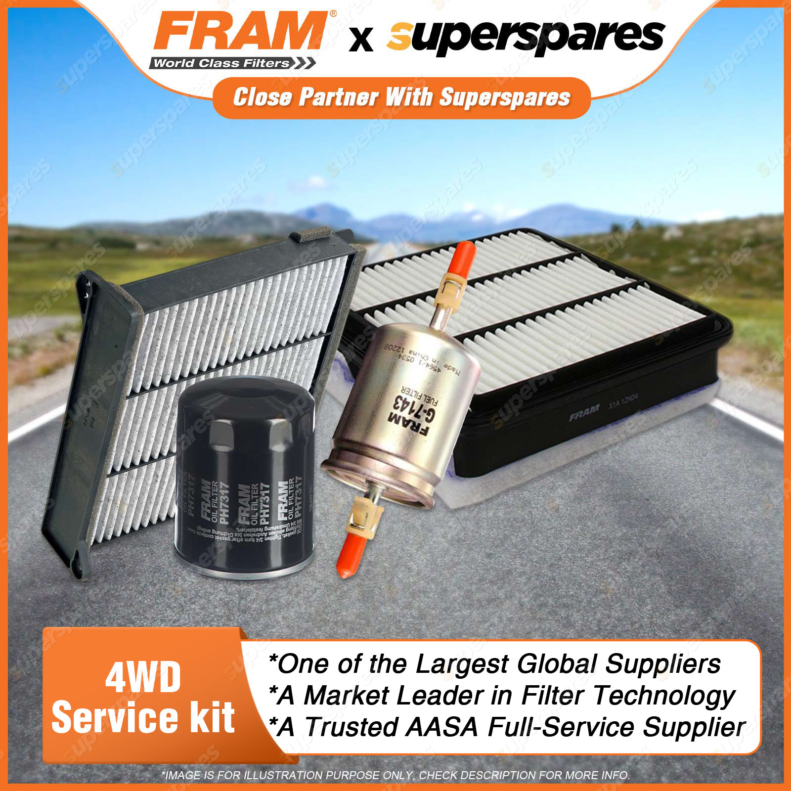 Off road driving, or the everyday drive,FRAM 4WD FilterKits are optimized for both on and off road performance.The solution for complete servicing requirements,the FRAM 4WD Filter Kits contain Oil Filter, Air Filter,Fuel Filter, and Cabin Air Filter where required.The correct filter fitment for each individual vehicle is all in one box,with one reference number. Each FRAM Filter is manufactured to meet or exceed OEM specifications, with a warranty to meet OE specified vehicle service intervals,and will not void your New Car Warranty. |
