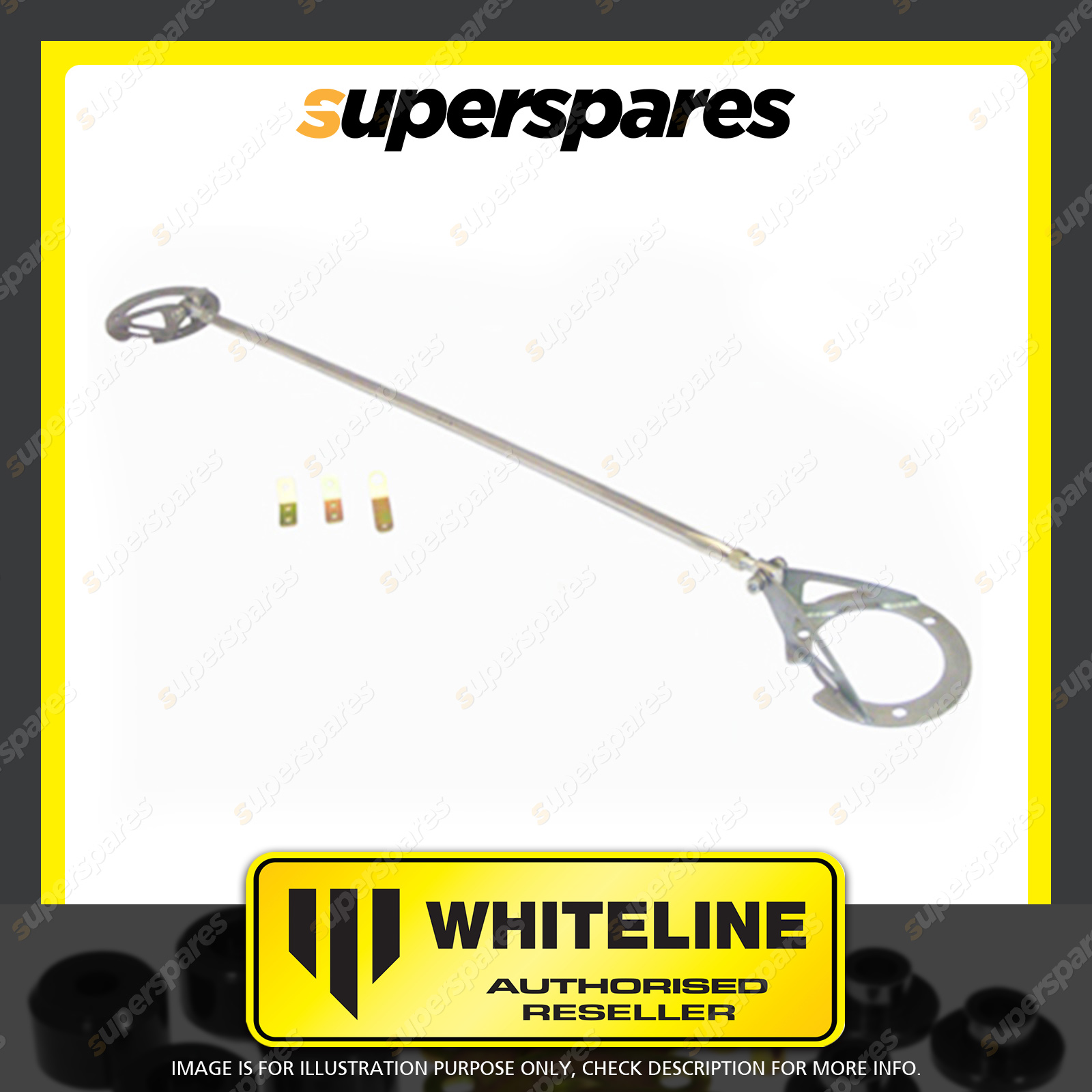 | Contents : Whiteline Front strut tower Brace Warranty : 3 Year / 60,000Kms Kit Contents : 1 Strut Brace, 3 Brackets, Install Guide | Kit Specifications : Material : Polished Alloy |