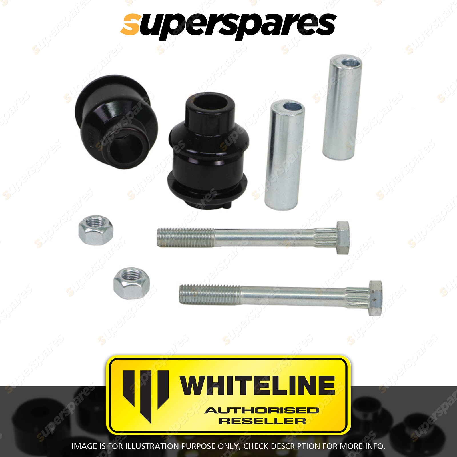 | Contents : Whiteline Front Control arm - lower bushing Warranty : 3 Year / 60,000Kms Kit Contents : 2 Bushings, 2 Tubes, 2 Bolts, 2 Nuts, Install Guide |