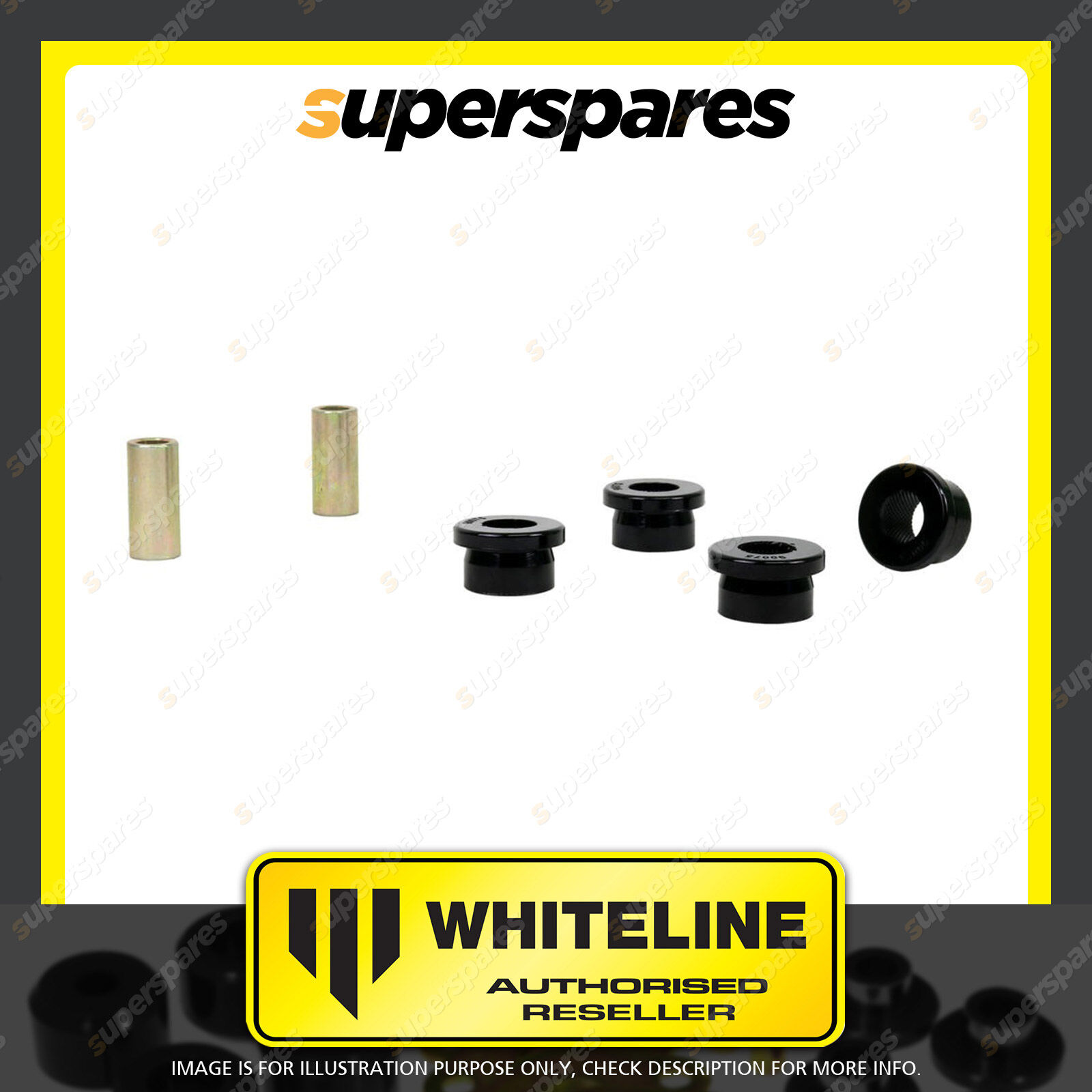 | Contents : Whiteline Front Control Arm Lower - Inner Front Bushing Kit Warranty : Lifetime Warranty Kit Contents : 4 Bushings, 2 Tubes |