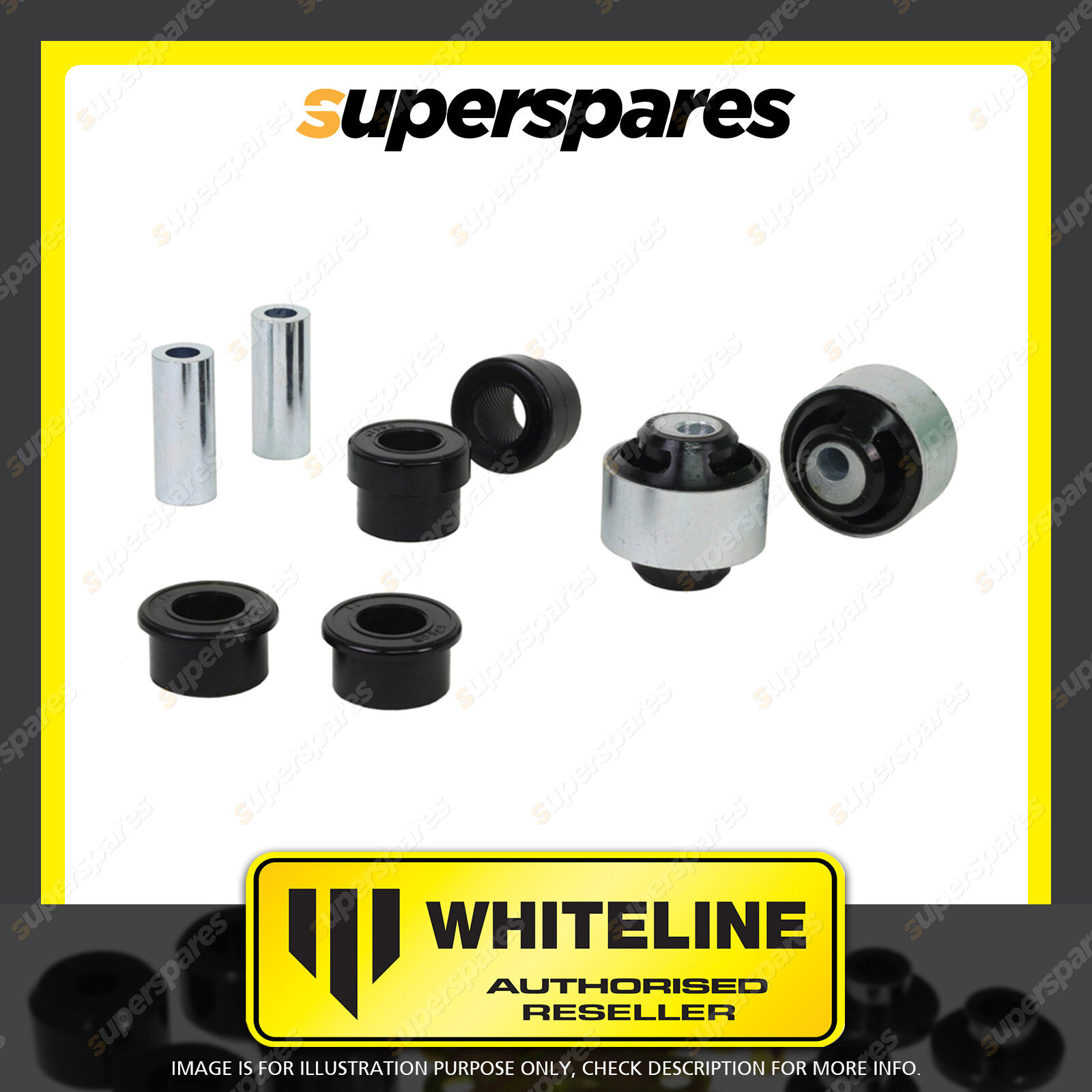 | Contents : Whiteline Front Control Arm - Lower Inner Front and Rear Bushing Warranty : 3 Year / 60,000Kms Kit Contents : 2 Shell Bushings, 4 Bushings, 2 Tubes, Install Guide, Grease |