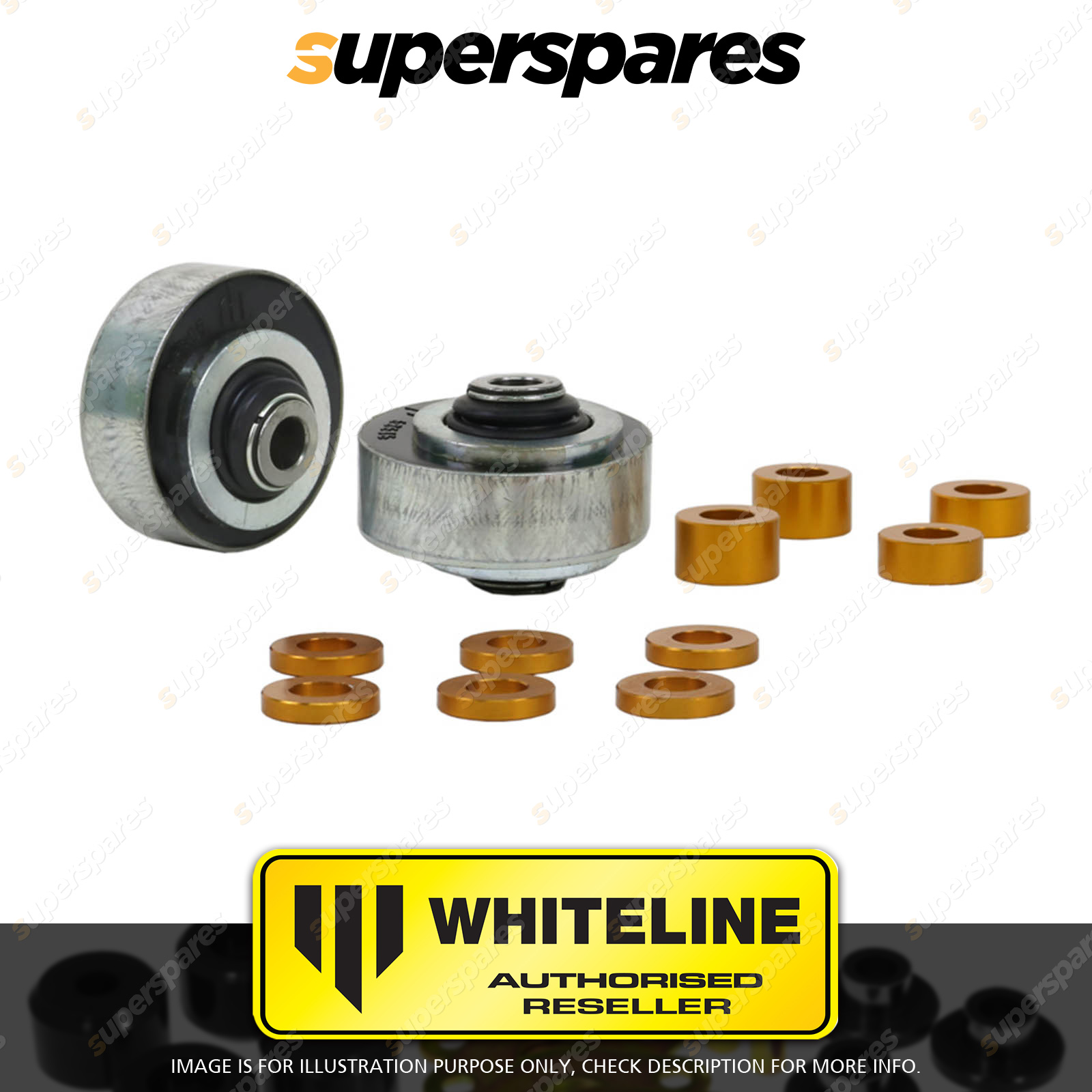 | Contents : Whiteline Front Control arm - lower inner Rear bushing Warranty : 3 Year / 60,000Kms Kit Contents : 2 Shell Bushings, 10 Spacers, Install Guide | Kit Specifications : Bush Qty : 2 |
