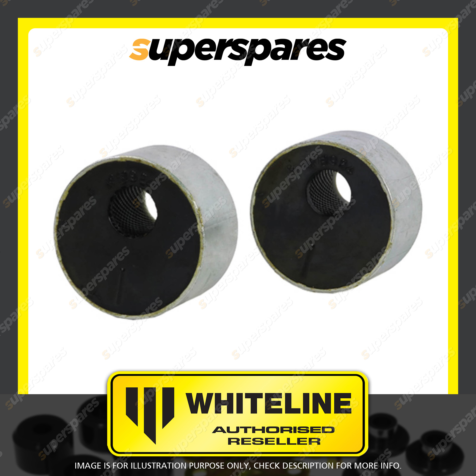 | Contents : Whiteline Front Control arm - lower inner Rear bushing Warranty : 3 Year / 60,000Kms Kit Contents : 2 Shell Bushings | Kit Specifications : Bush Qty : 2 |