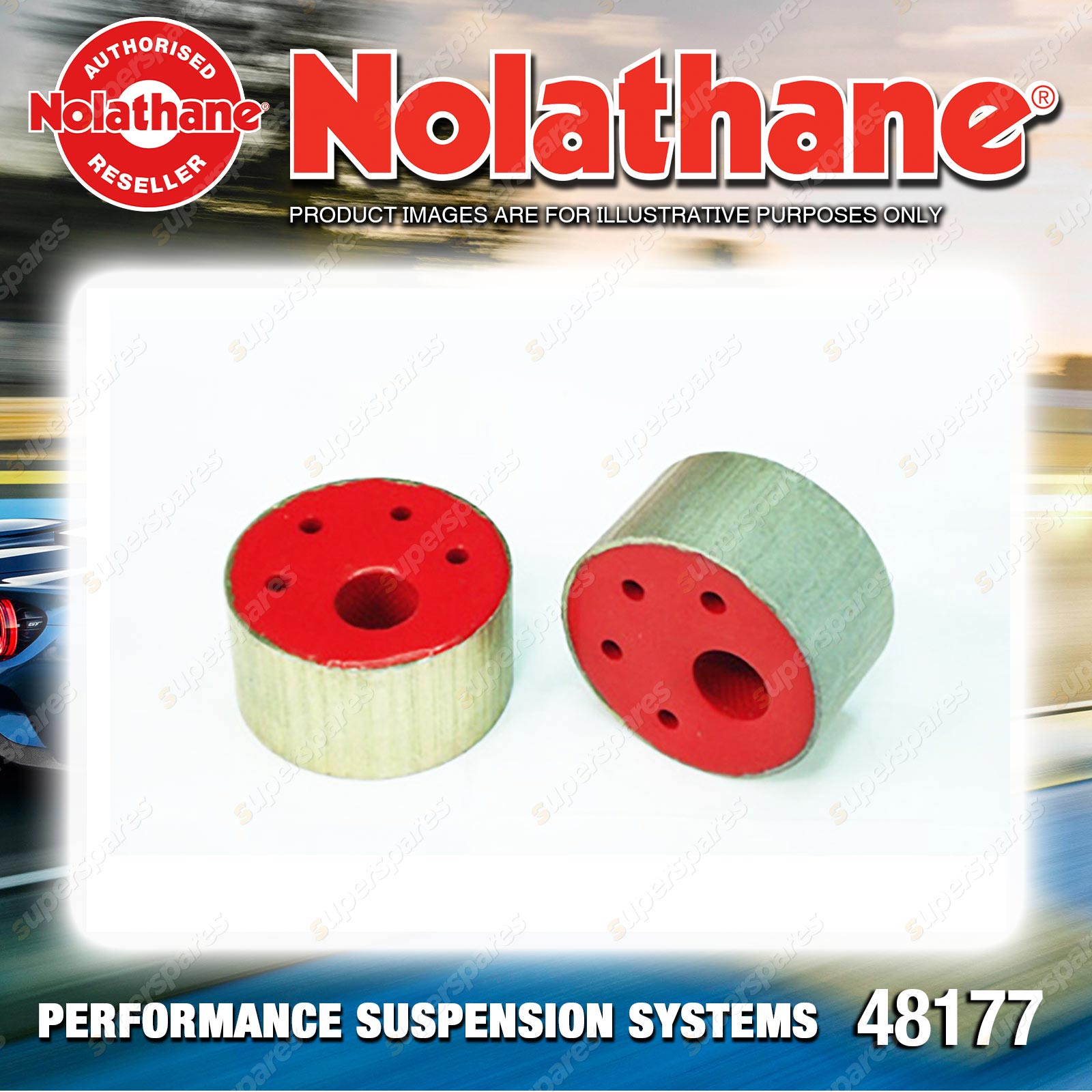 | Contents : Nolathane Front Control arm - lower inner rear bushing Warranty : 3 Year / 60,000Kms Kit Contents : 2 Shell Bushings, Grease |