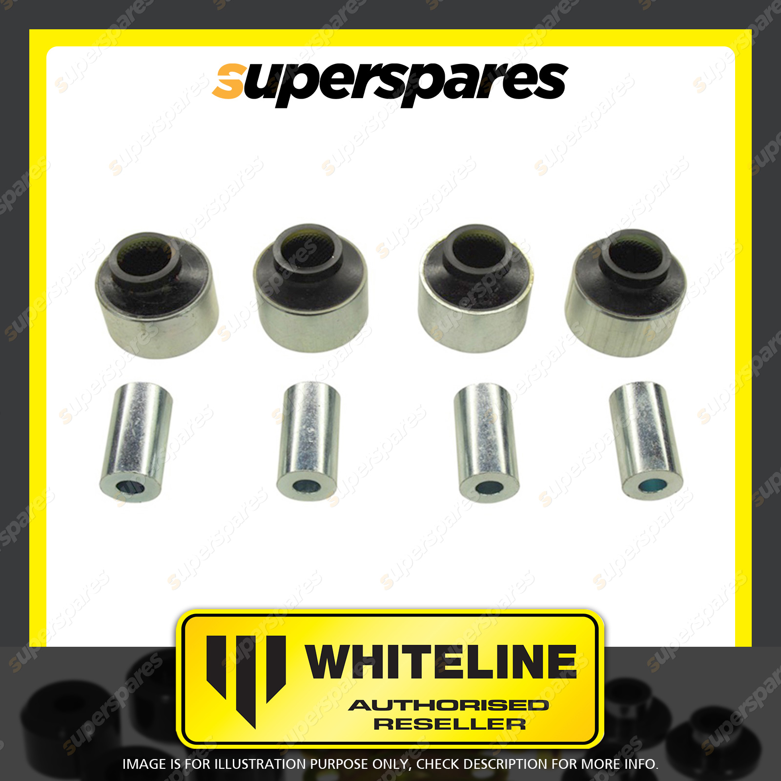 | Contents : Whiteline Front Control arm - upper bushing Warranty : 3 Year / 60,000Kms Kit Contents : 4 Shell Bushings, 4 Tubes, Grease | Kit Specifications : Bush Qty : 4 |