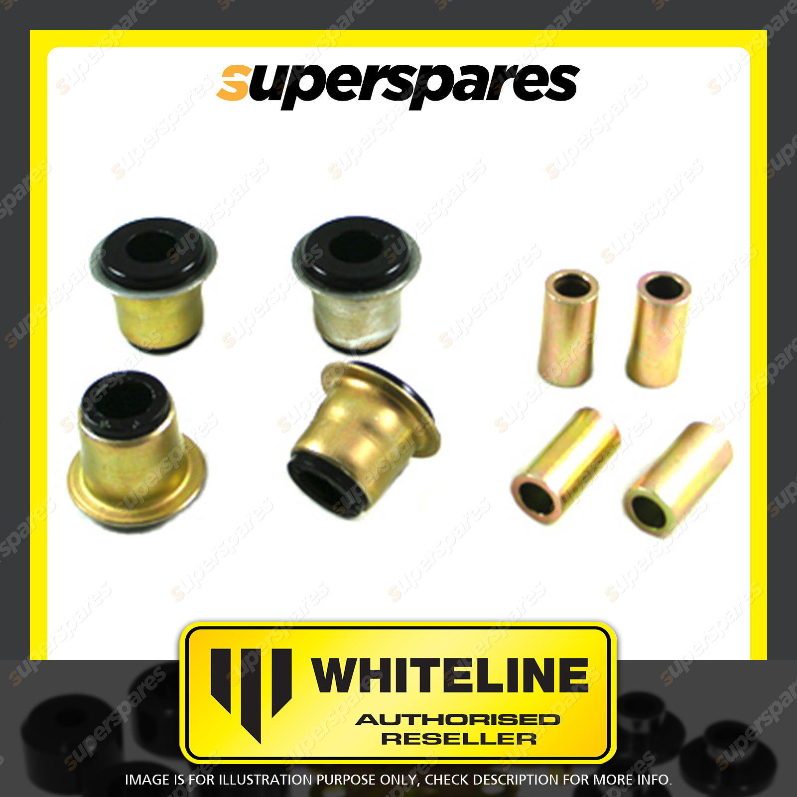| Contents : Whiteline Front Control arm - upper bushing Warranty : 3 Year / 60,000Kms Kit Contents : 4 Shell Bushings, 4 Tubes, Install Guide, Grease |