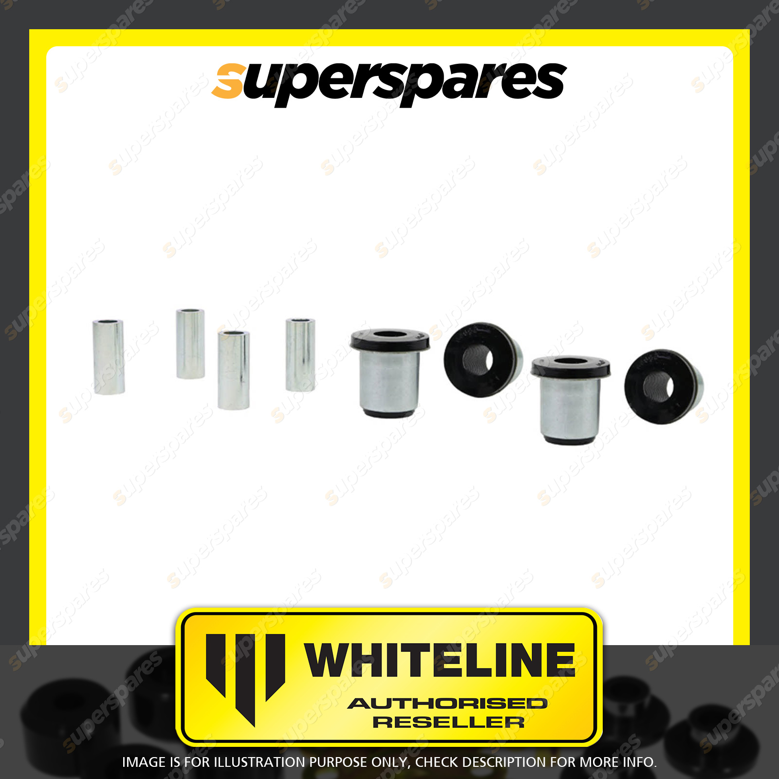 | Contents : Whiteline Front Control arm - upper bushing Warranty : 3 Year / 60,000Kms Kit Contents : 4 Shell Bushings, 4 Tubes, Grease |