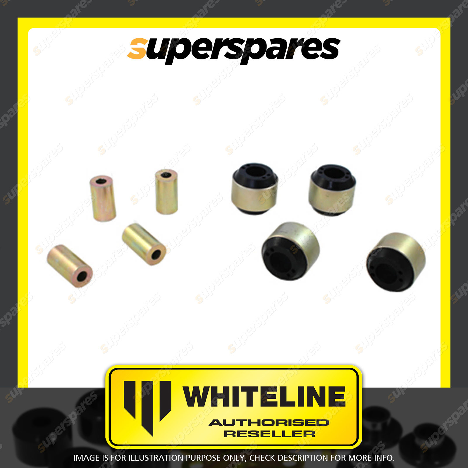 | Contents : Whiteline Front Control arm - upper bushing Warranty : 3 Year / 60,000Kms Kit Contents : 4 Shell Bushings, 4 Tubes, Install Guide, Grease |
