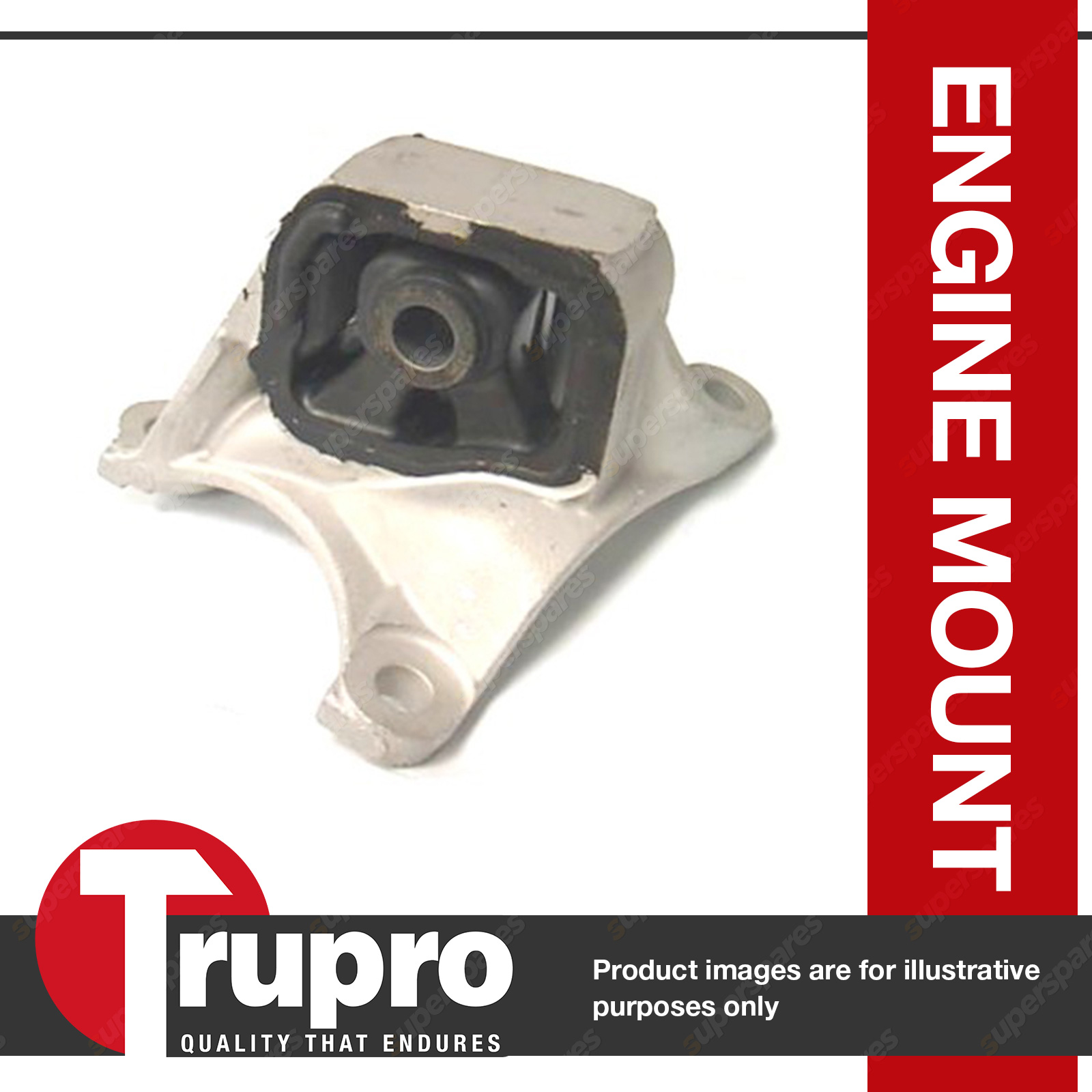 Take a look at your other mounts prior to ordering. Grab your engine by the top and shake it. If it movesrather significantly, replace all the mounts to stiffen up your entire drivetrain for better performance. Excessive drivetrain vibration is cause by one of a few things, but more than likely, it is the mounts in your vehicle. They keep your engine and transmission secure for more positive shifting and drivetrain triangulation, as well as absorbing vibration. If any of these are occurring in your vehicle, its time to examine your mounts. This motor mount is one step towards repair. This mount will function and fit just like stock. Not only will it fit great, it will absorb those nasty vibrations, quieting your cabin andreducing vehicle shake. This mount is of stock hardness andwill restore a factory type feel. |