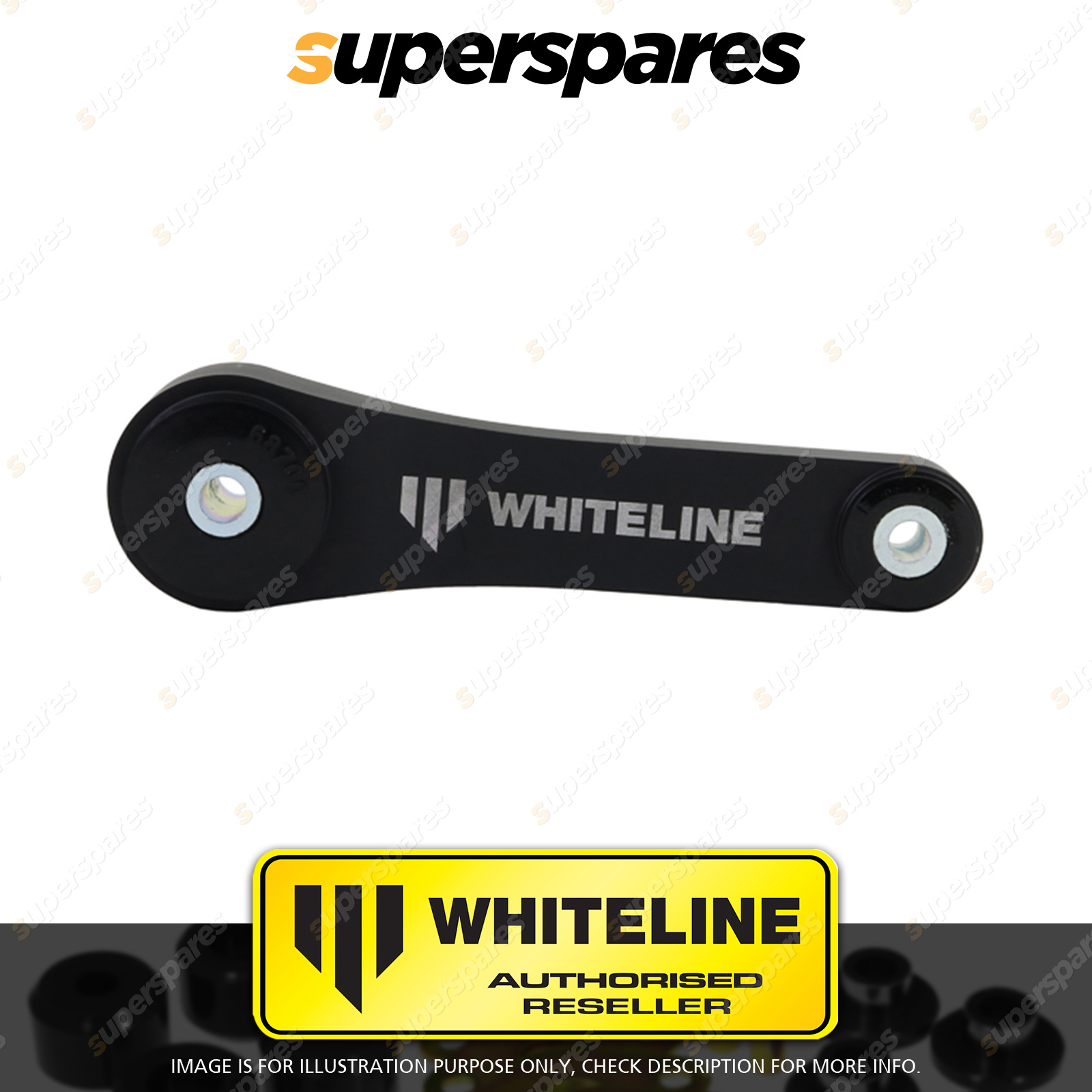 | Contents : Whiteline Front Engine - pitch mount Warranty : 3 Year / 60,000Kms Kit Contents : 1 Pitch Mount, Install Guide | Kit Specifications : Material : Anodized Alloy |