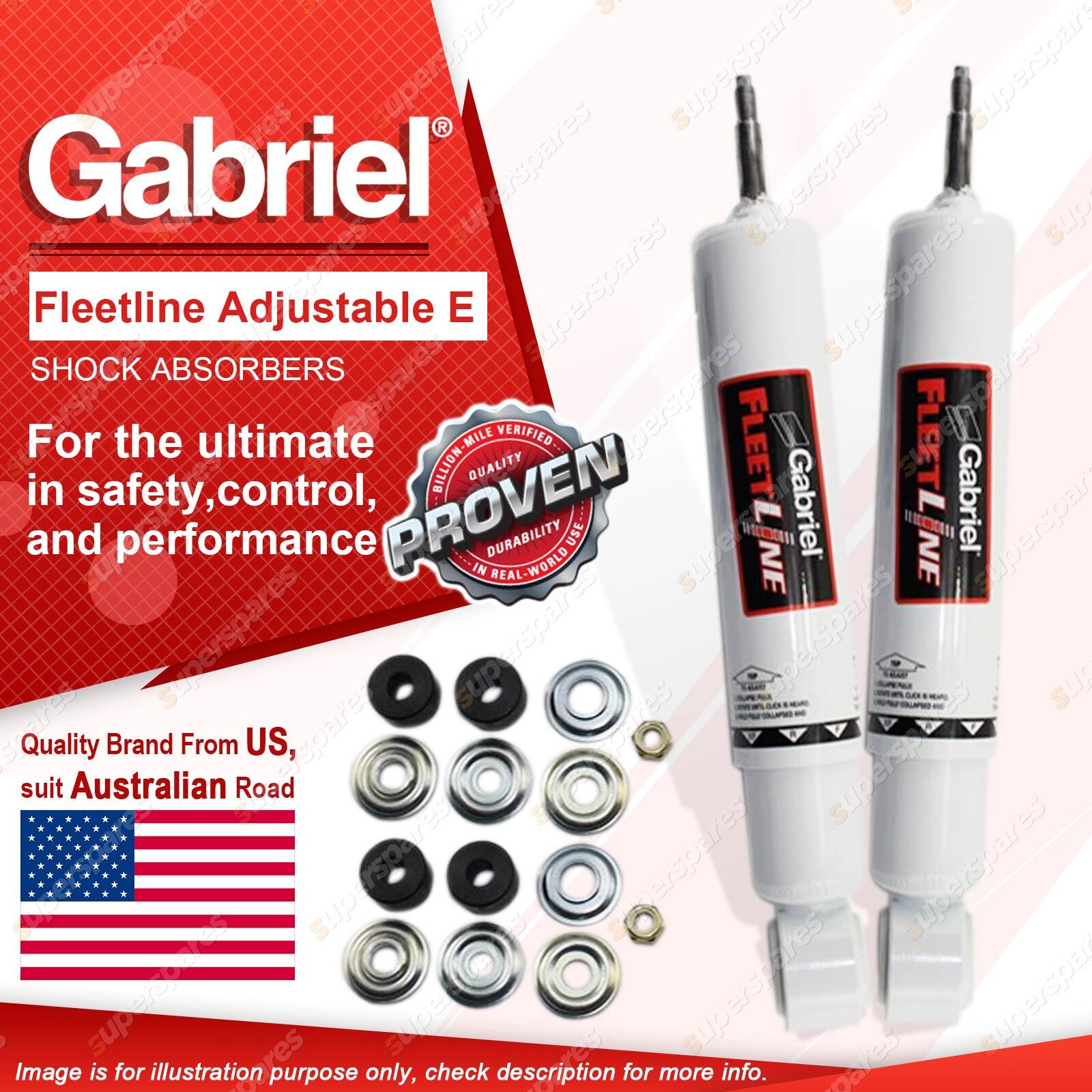| Note: eBay's compatibility table is not accurate in some cases. Please refer to the following information we have provided for you. Copyright © 2014 - 2023 Superspares. All rights reserved. Contents : 2 x Front Gabriel Fleetline Adjustable HD Truck Shock Absorbers Warranty : 3 Years Suit : Mitsubishi Fuso Incl. Fighter FM600, 617 85 - 95 |