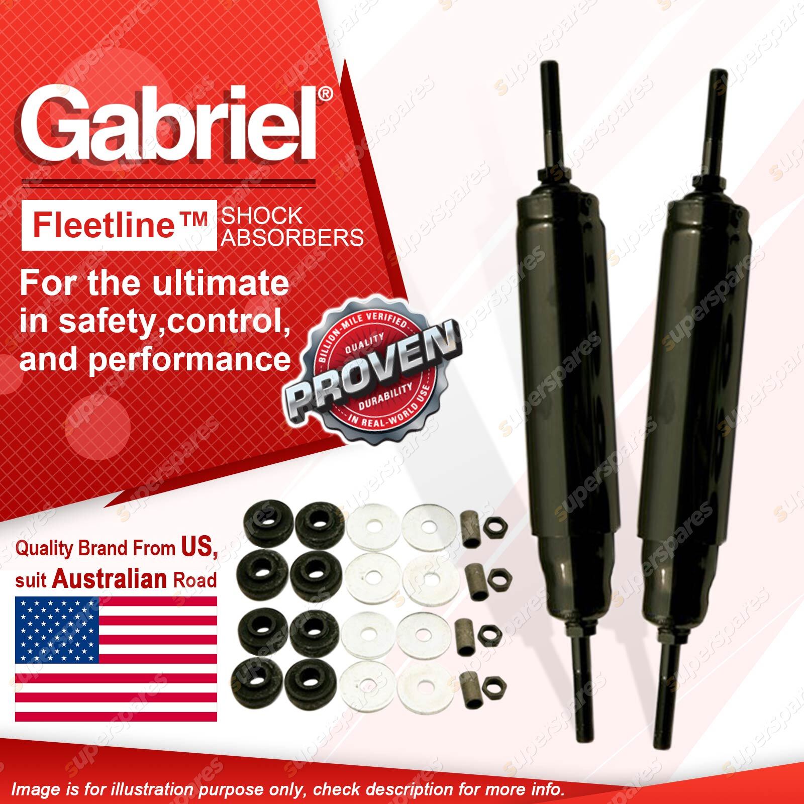 | Note: eBay's compatibility table is not accurate in some cases. Please refer to the following information we have provided for you. Copyright © 2014 - 2023 Superspares. All rights reserved. Contents : 2 x Front Gabriel Fleetline HD Truck Shock Absorbers Warranty : 3 Years Suit : International Acco C Series with axle FA02309, FA02339 80 - on International Acco D Series with stud/stud 86 - on International Acco E Series with axle 03514 & 02343 91 - on International S Line to chassis J02060 excl. FA236 91 - on International T Line to chassis R01769 91 - on |