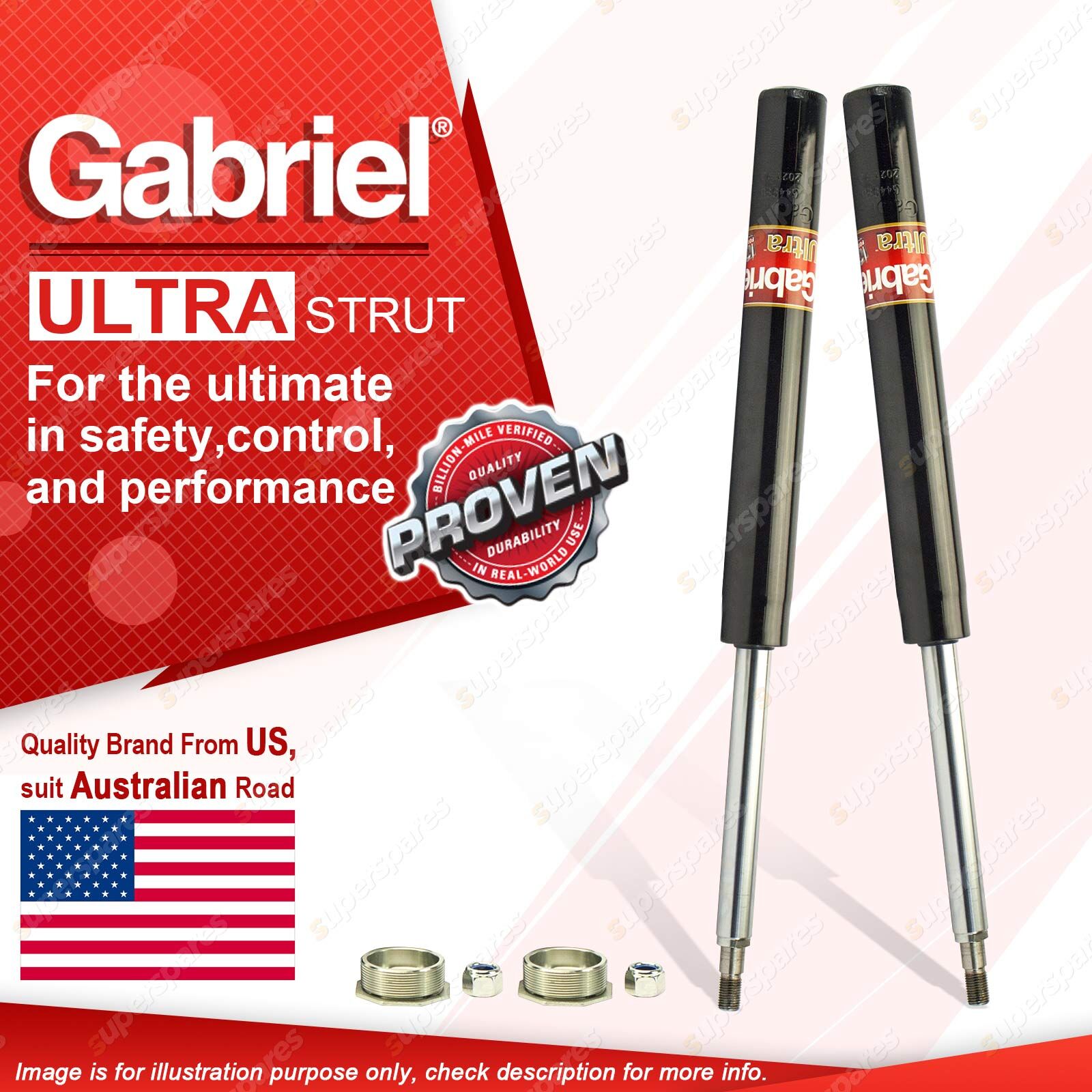 | Note: eBay's compatibility table is not accurate in some cases. Please refer to the following information we have provided for you. Copyright © 2014 - 2023 Superspares. All rights reserved. Contents : 2 x Front Gabriel Ultra Strut Cartridge Shock Absorbers - Gas Warranty : 3 Years Suit : Toyota Camry SV20, 21, 22 4 Cyl Sedan, Wagon 5/87 - 3/93 |