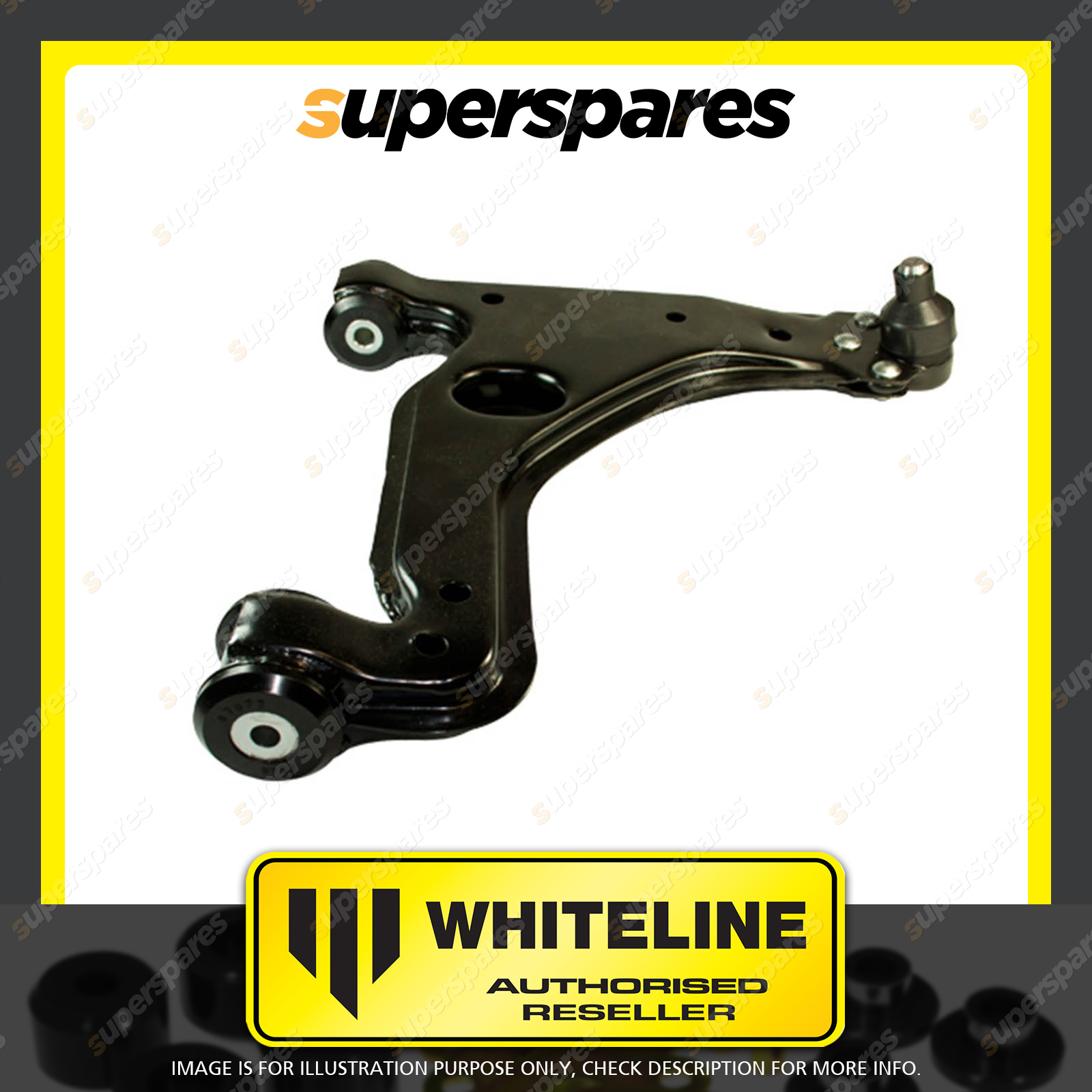 | Contents : Whiteline Front lower Control arm Warranty : 3 Year / 60,000Kms Kit Contents : 1 Arm, Grease |