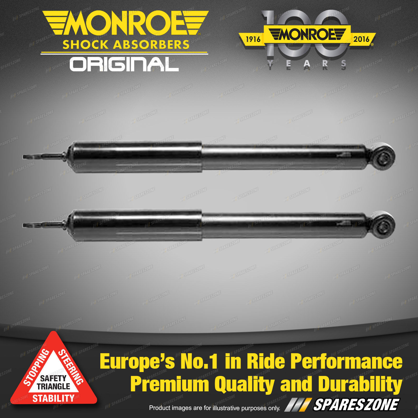Designed to meet or exceed the motor vehicle manufacturers specifications for original equipment. Monroe supply original equipment to all of Australia's leading automotive manufacturers including Holden, Ford, Mitsubishi and Toyota. Available in standard hydraulic and gas pressurised models. |