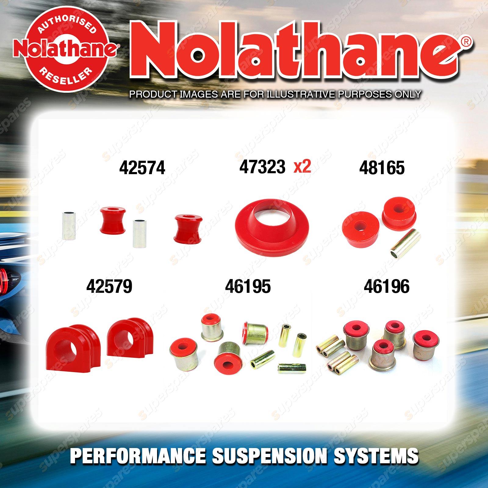 | Nolathane offers a complete range of suspension system.And Nolathane suspension bushing synchronise your suspension system for optimal safety, hangdling and performance .Whether you intend to build a Street Machine, Fast 4, go bush or simply drive to work,suspension bushes are the link between your vehicle and it's springs,struts and shock absorbers.Suspension bushes provide the movement and/or mounting points in your vehicle's suspension system. |
