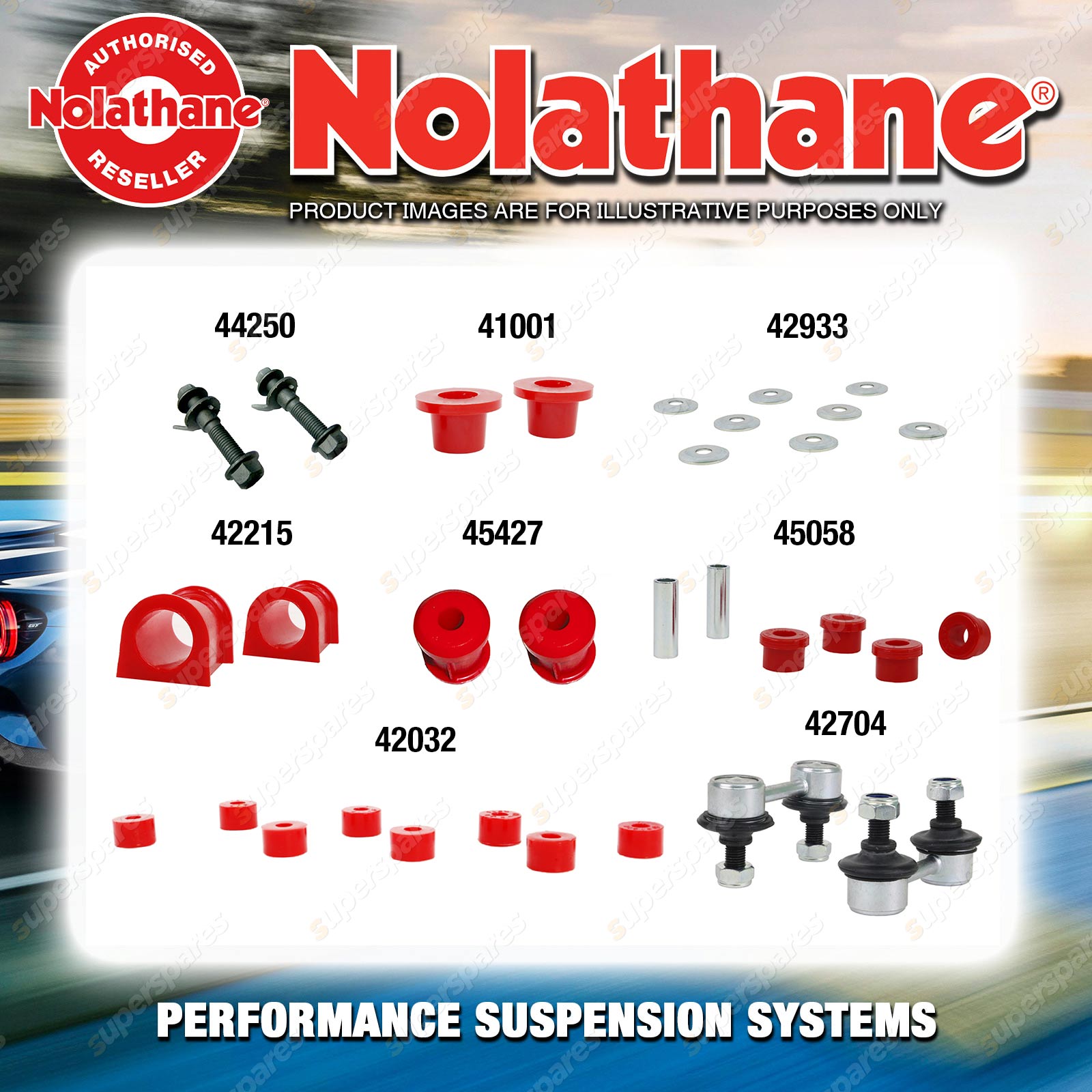 | Nolathane offers a complete range of suspension system.And Nolathane suspension bushing synchronise your suspension system for optimal safety, hangdling and performance .Whether you intend to build a Street Machine, Fast 4, go bush or simply drive to work,suspension bushes are the link between your vehicle and it's springs,struts and shock absorbers.Suspension bushes provide the movement and/or mounting points in your vehicle's suspension system. |