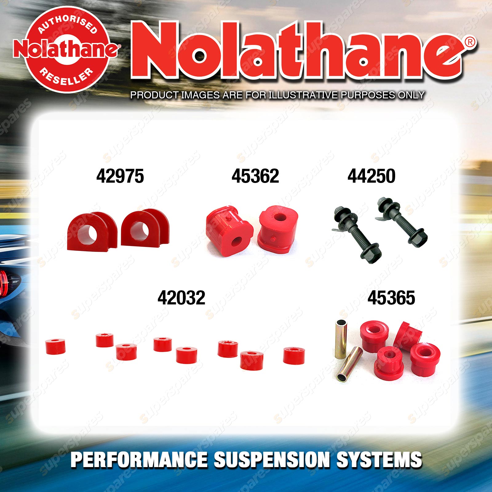 | Nolathane offers a complete range of suspension system.And Nolathane suspension bushing synchronise your suspension system for optimal safety, hangdling and performance .Whether you intend to build a Street Machine, Fast 4, go bush or simply drive to work,suspension bushes are the link between your vehicle and it's springs,struts and shock absorbers.Suspension bushes provide the movement and/or mounting points in your vehicle's suspension system. |