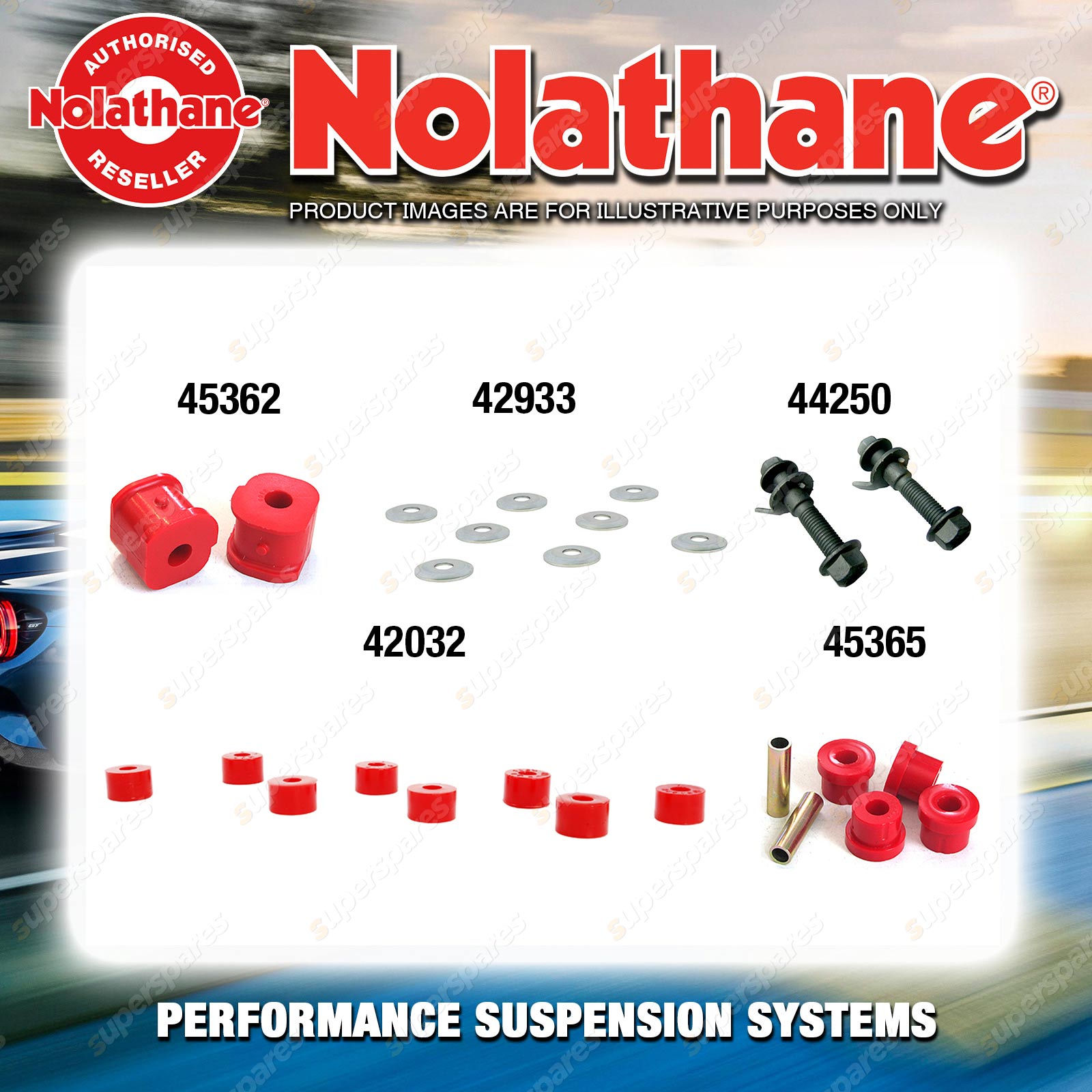| Nolathane offers a complete range of suspension system.And Nolathane suspension bushing synchronise your suspension system for optimal safety, hangdling and performance .Whether you intend to build a Street Machine, Fast 4, go bush or simply drive to work,suspension bushes are the link between your vehicle and it's springs,struts and shock absorbers.Suspension bushes provide the movement and/or mounting points in your vehicle's suspension system. |