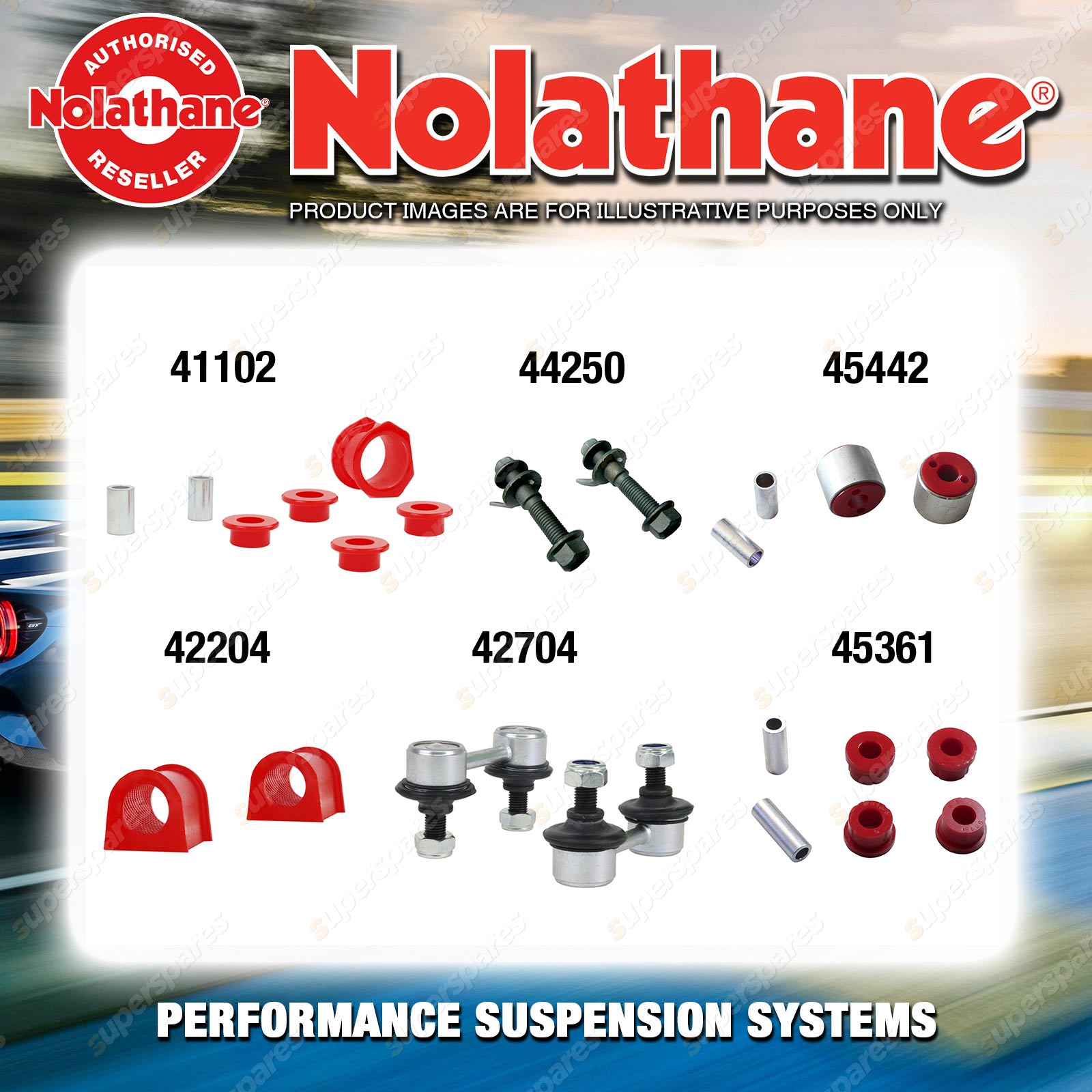 | Nolathane offers a complete range of suspension system.And Nolathane suspension bushing synchronise your suspension system for optimal safety, hangdling and performance .Whether you intend to build a Street Machine, Fast 4, go bush or simply drive to work,suspension bushes are the link between your vehicle and it's springs,struts and shock absorbers.Suspension bushes provide the movement and/or mounting points in your vehicle's suspension system. |