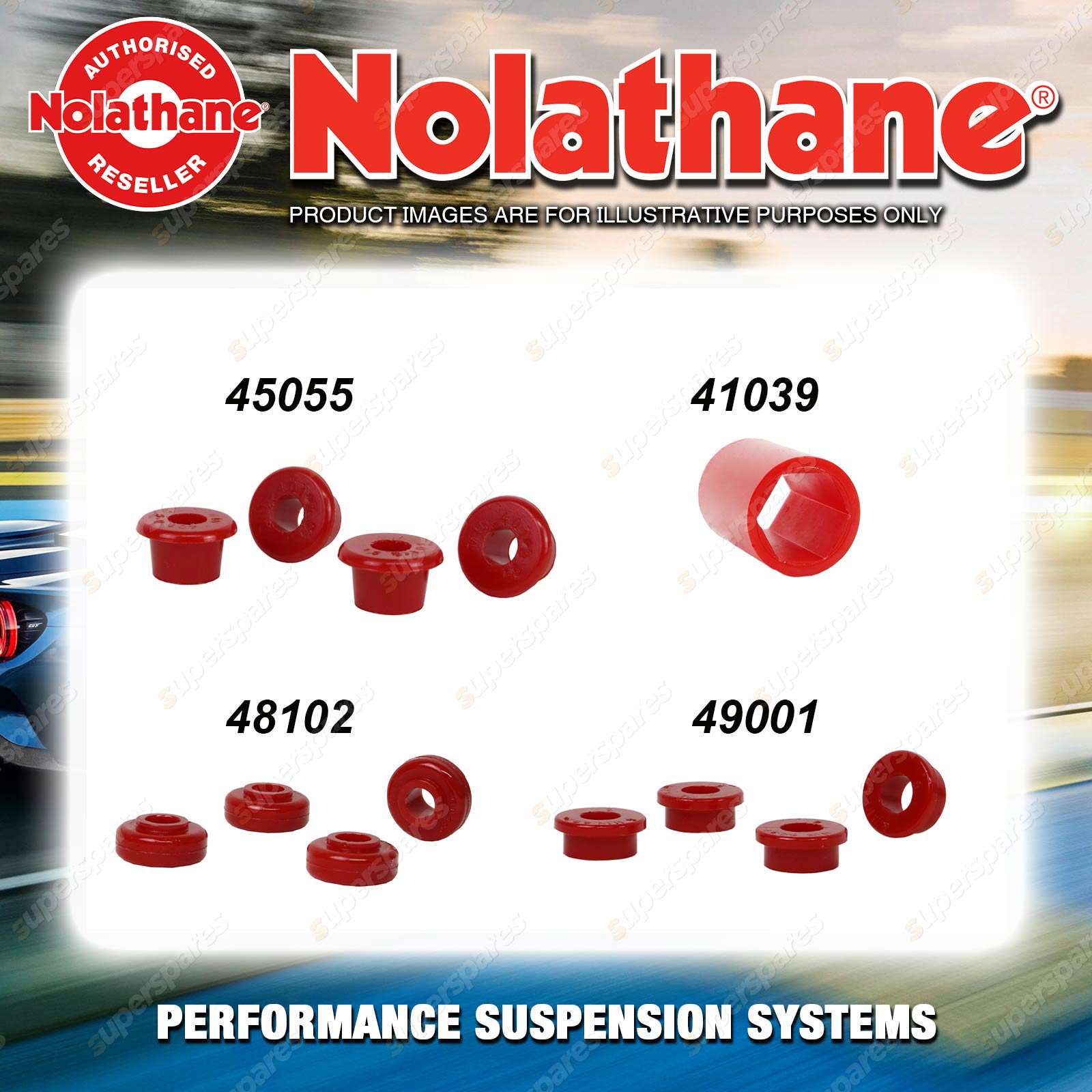 | Nolathane offers a complete range of suspension system.And Nolathane suspension bushing synchronise your suspension system for optimal safety, hangdling and performance .Whether you intend to build a Street Machine, Fast 4, go bush or simply drive to work,suspension bushes are the link between your vehicle and it's springs,struts and shock absorbers.Suspension bushes provide the movement and/or mounting points in your vehicle's suspension system. |