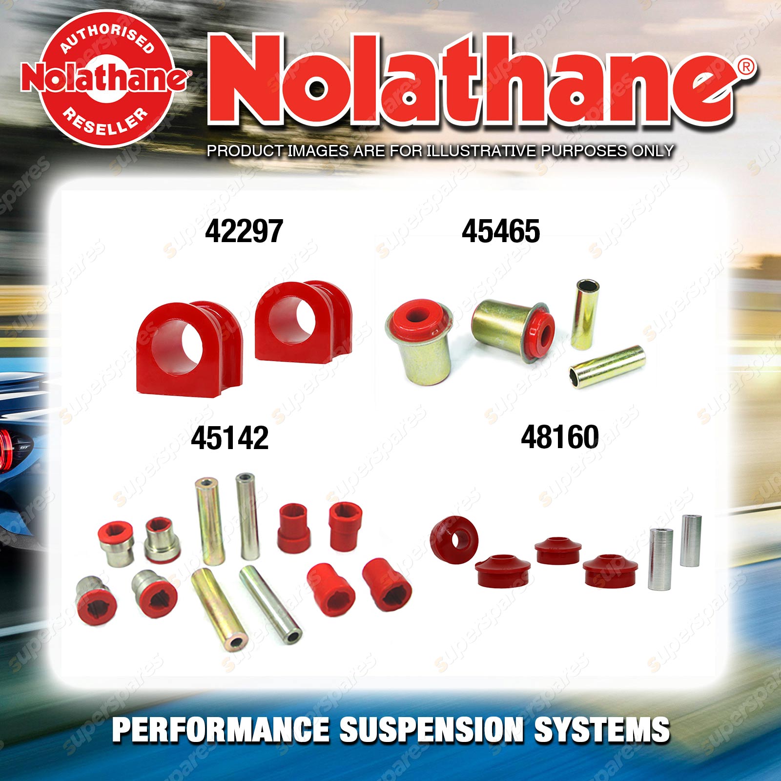 | Nolathane offers a complete range of suspension system.And Nolathane suspension bushing synchronise your suspension system for optimal safety, hangdling and performance .Whether you intend to build a Street Machine, Fast 4, go bush or simply drive to work,suspension bushes are the link between your vehicle and it's springs,struts and shock absorbers.Suspension bushes provide the movement and/or mounting points in your vehicle's suspension system. |