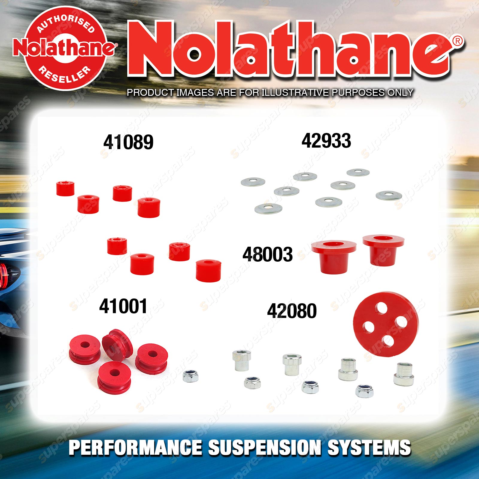 | Nolathane offers a complete range of suspension system.And Nolathane suspension bushing synchronise your suspension system for optimal safety, hangdling and performance .Whether you intend to build a Street Machine, Fast 4, go bush or simply drive to work,suspension bushes are the link between your vehicle and it's springs,struts and shock absorbers.Suspension bushes provide the movement and/or mounting points in your vehicle's suspension system. |
