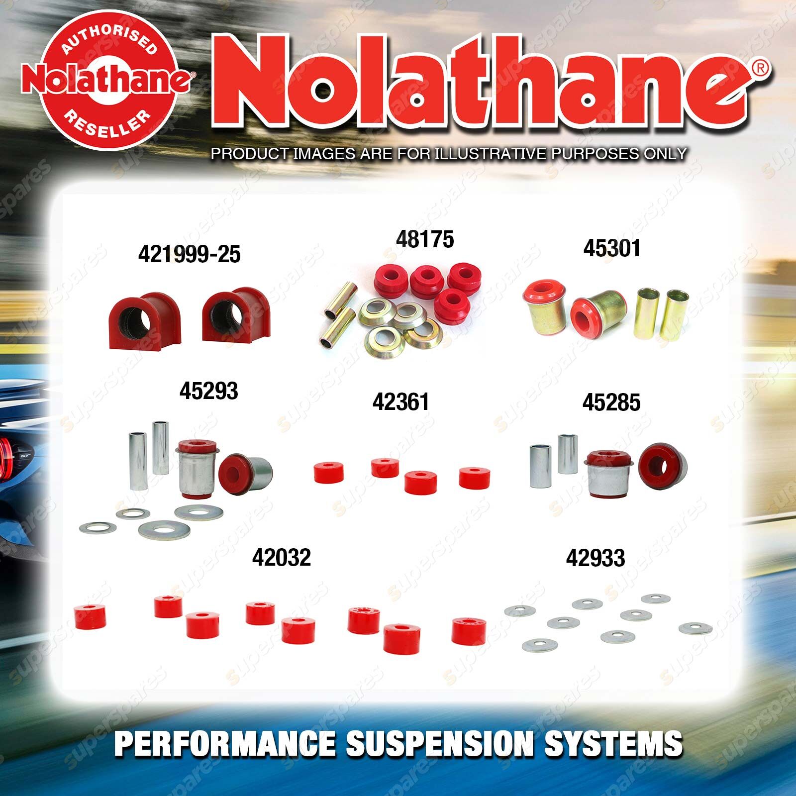 | Nolathane offers a complete range of suspension system.And Nolathane suspension bushing synchronise your suspension system for optimal safety, hangdling and performance .Whether you intend to build a Street Machine, Fast 4, go bush or simply drive to work,suspension bushes are the link between your vehicle and it's springs,struts and shock absorbers.Suspension bushes provide the movement and/or mounting points in your vehicle's suspension system. |
