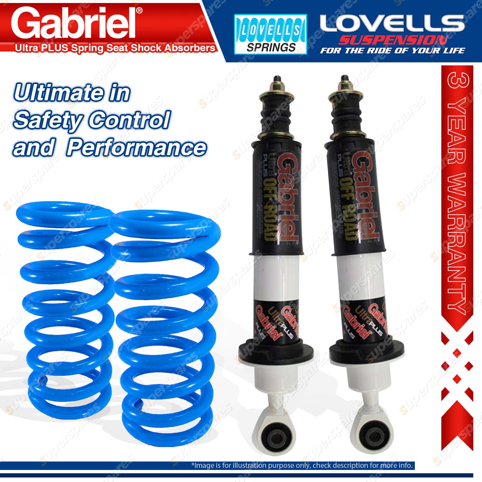 Contents: 2 x Gabriel Ultra PLUS Spring Seat Shock Absorbers - Gas 2 x Raised Lovells Springs Suit: Nissan Navara D40 4WD 2.5 Diesel 4.0 V6 11/05-4/15 Notes: Gabriel Shocks: OE & 40mm Raised Height |