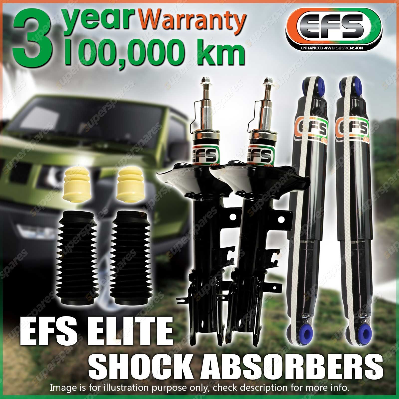 Specifications: EFS Elite Shock Absorber----The EFS Elite Shock Absorber Range is developed for the 4wd owner who only pursues the best for their 4wd. EFS is built with high quality Internal & external components combined together to give you excellent performance and longevity. EFS shock absorbers are vehicle & height specific with valving developed to suit each vehicle. "Not a one shock suits all approach".