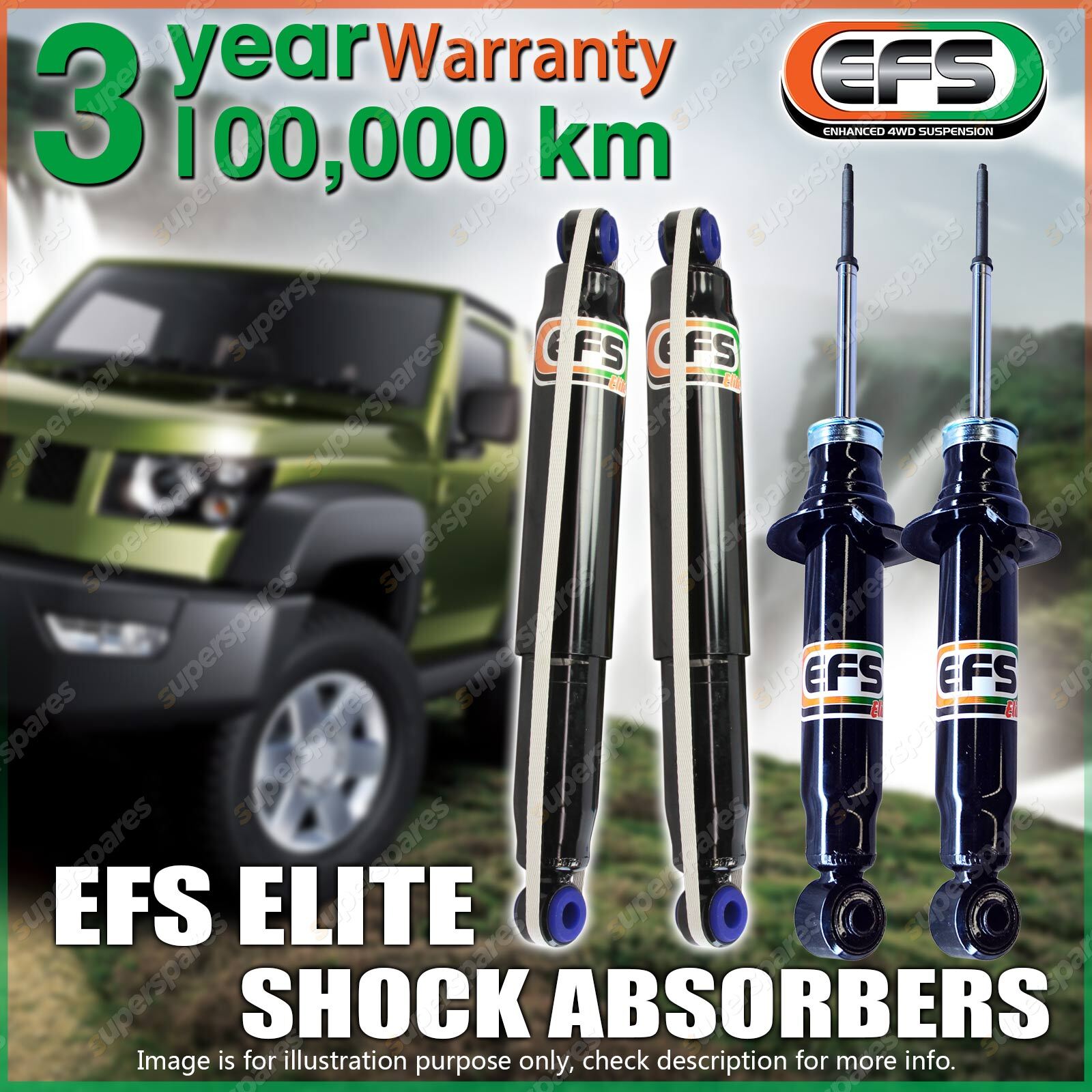 Specifications: EFS Elite Shock Absorber----The EFS Elite Shock Absorber Range is developed for the 4wd owner who only pursues the best for their 4wd. EFS is built with high quality Internal & external components combined together to give you excellent performance and longevity. EFS shock absorbers are vehicle & height specific with valving developed to suit each vehicle. "Not a one shock suits all approach".