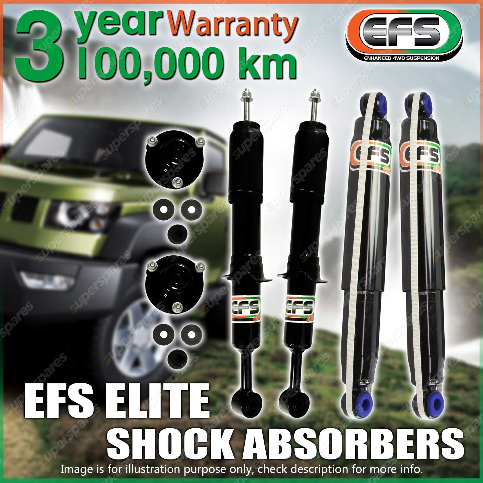 Specifications: EFS Elite Shock Absorber----The EFS Elite Shock Absorber Range is developed for the 4wd owner who only pursues the best for their 4wd. EFS is built with high quality Internal & external components combined together to give you excellent performance and longevity. EFS shock absorbers are vehicle & Height - Strut Top Cap And Fitting Kit Included specific with valving developed to suit each vehicle. "Not a one shock suits all approach".