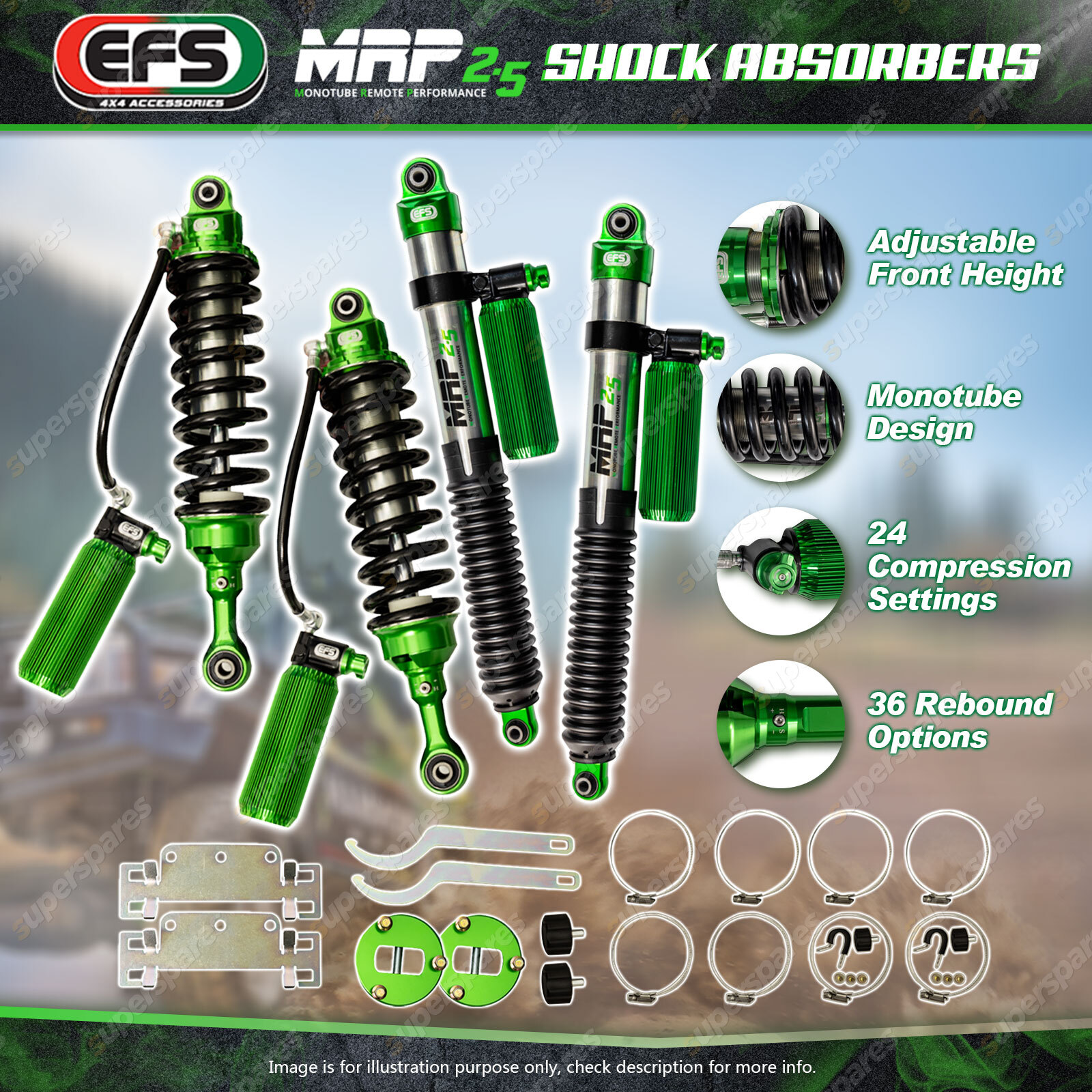 EFS vision has always been to create a product that offers the best performance while delivering the smoothest ride possible. With the MRP 2.5, that vision is now a reality. You can now fully customise your ride to your needs to maximise comfort and performance in all types of terrain. Embrace green and get ready for the ride of your life!
