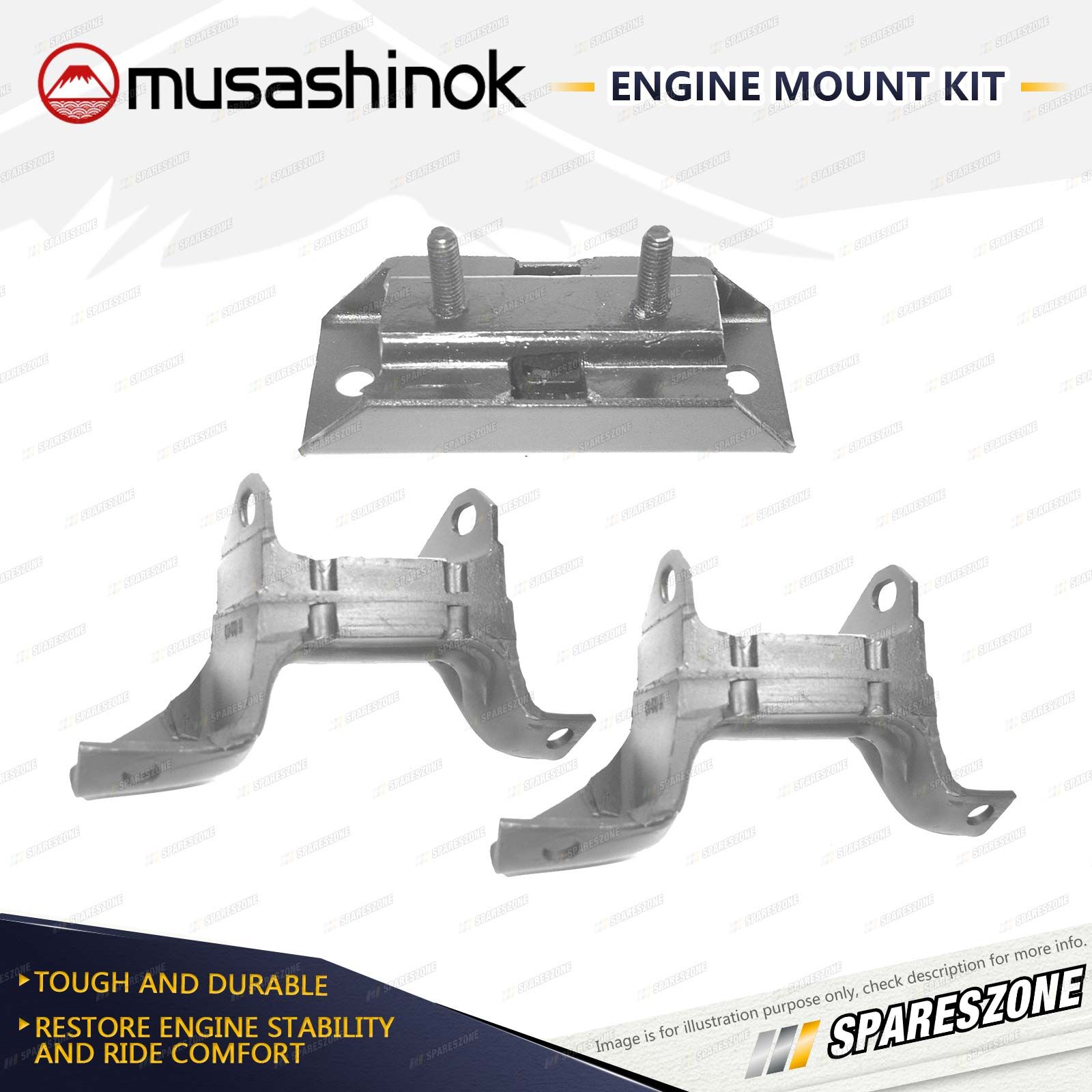 ![]() | About Engine Mounts : Musashinok engine mounts are manufactured to OE standard and very high quality, which is vital given the additional pressure on today's engine mounts.The Musashinok Engine Mount range sets new standards for quality whether manufactured in rubber or urethane.Musashinok's unique urethane design provides rubber-like smoothness and combined with urethanes durability, gives an added advantage over similar products manufactured with rubber. This makes them an ideal product for use in taxis and other commercial fleets. |