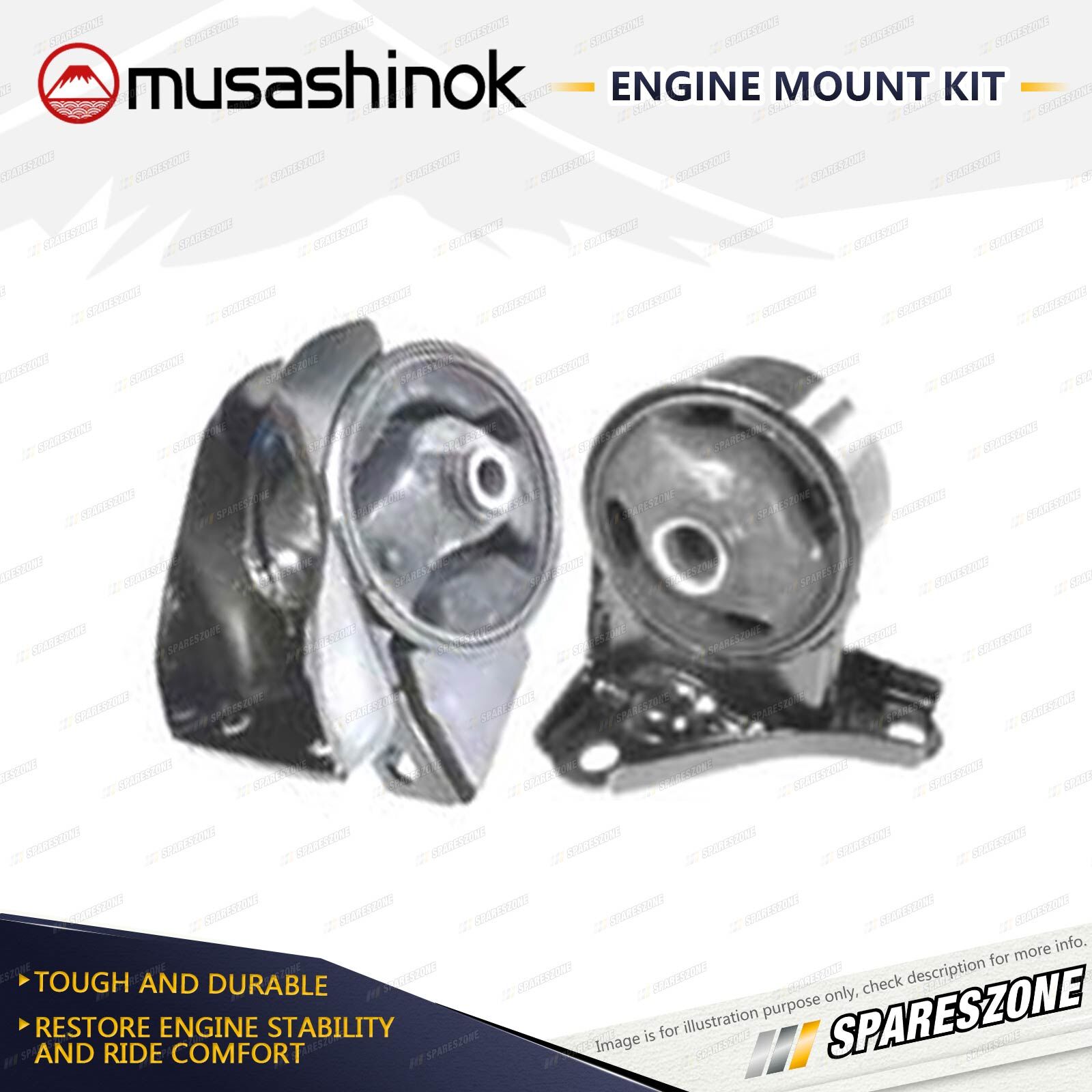 ![]() | About Engine Mounts : Musashinok engine mounts are manufactured to OE standard and very high quality, which is vital given the additional pressure on today's engine mounts.The Musashinok Engine Mount range sets new standards for quality whether manufactured in rubber or urethane.Musashinok's unique urethane design provides rubber-like smoothness and combined with urethanes durability, gives an added advantage over similar products manufactured with rubber. This makes them an ideal product for use in taxis and other commercial fleets. |